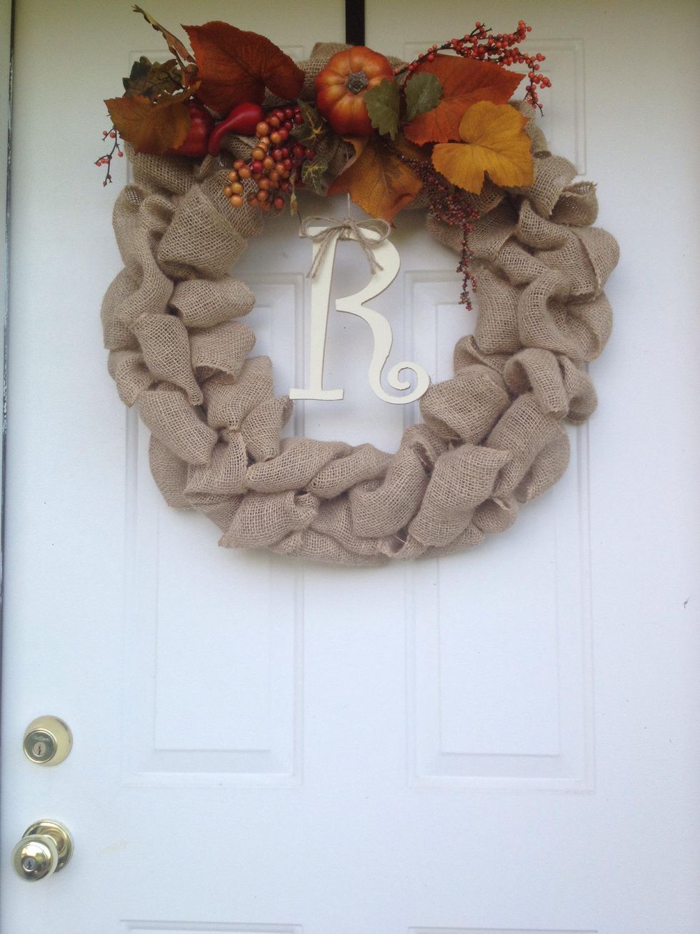 Step 7: Using twine, tie your foliage to the wreath frame. You can hot glue to the burlap but I didn't want to weight the wreath down. Also, tie your from the middle top of the wreath frame.