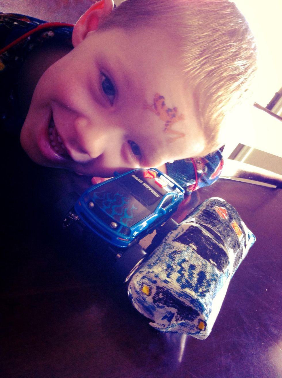 Tattoo-faced boy is happy. That makes mom happy! Time to rev your engines & RACE! Enjoy!