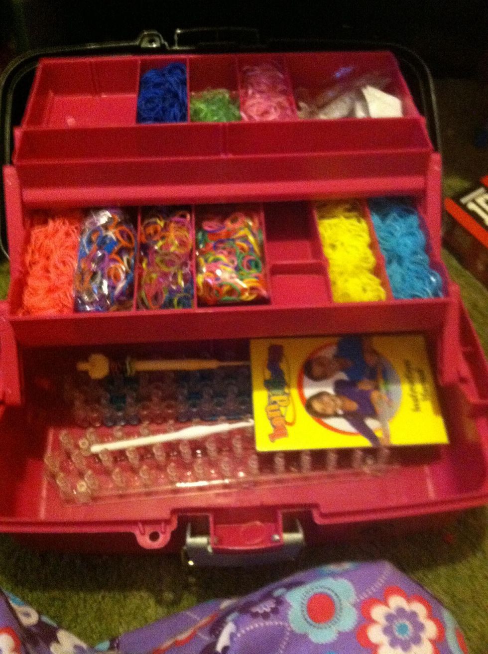 5. So now you just keep doing that except you do not put any figure eight bands on your loom again soon you will see that a bracelet is coming down both of the pegs!!