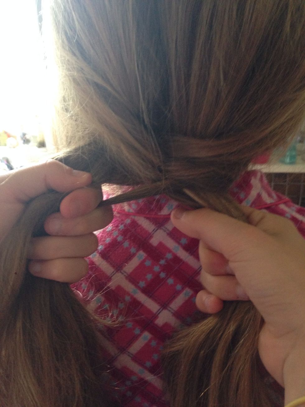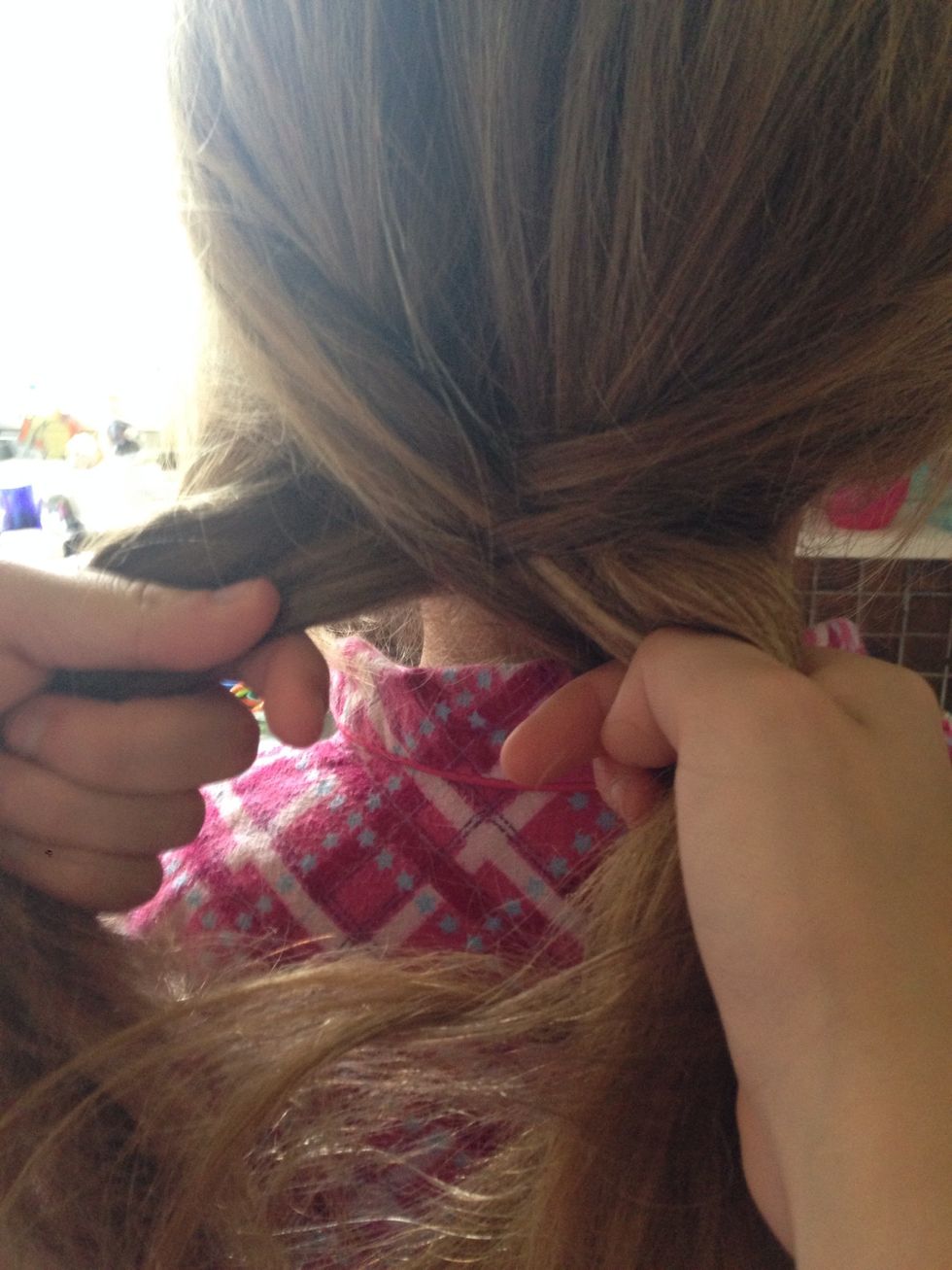 From one side of the hair take a small section from the back of the hair and cross it over to the other section of hair.
