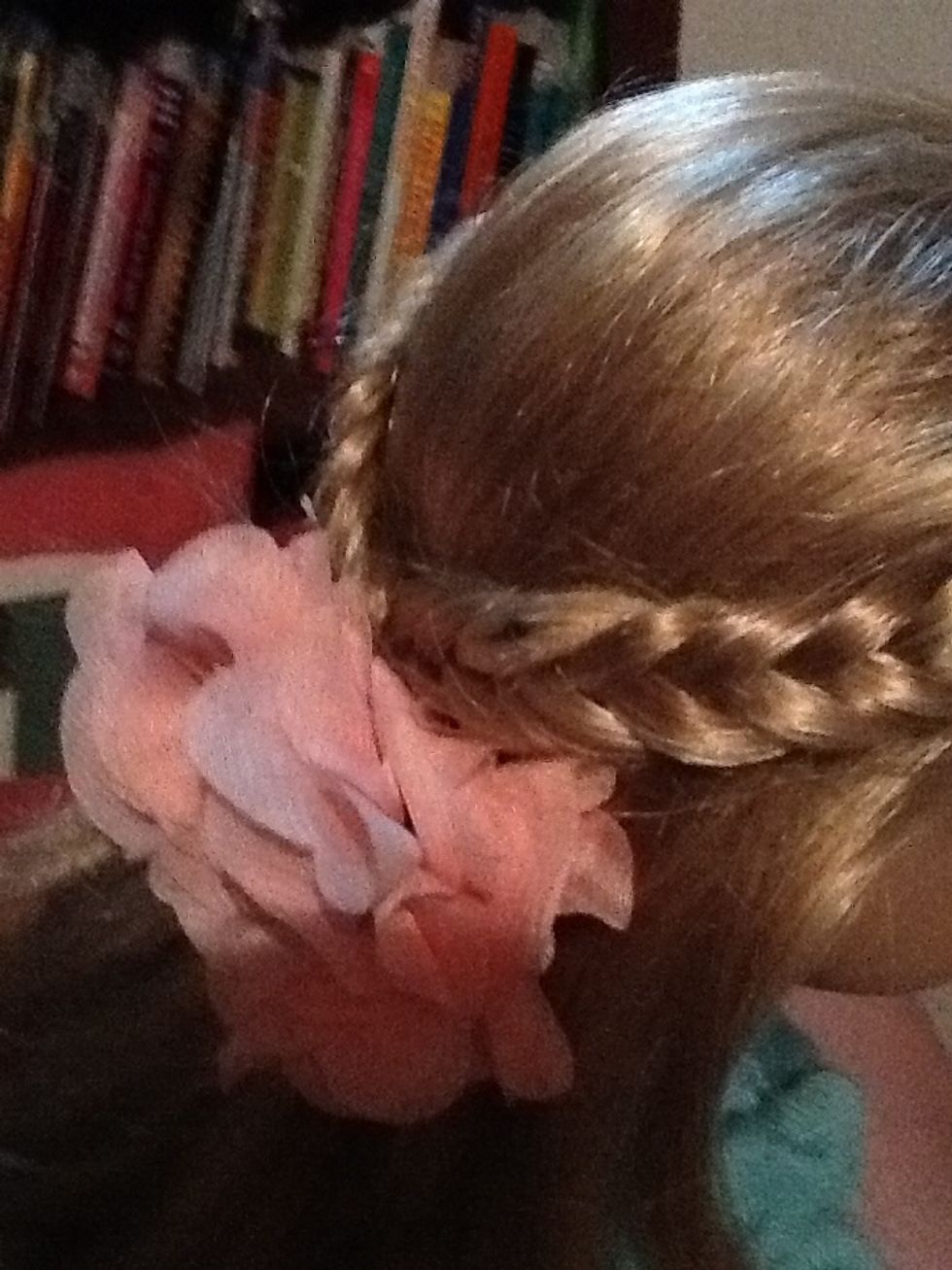 Then to hide the bobby pins put a flower or a pretty clip over the pins
