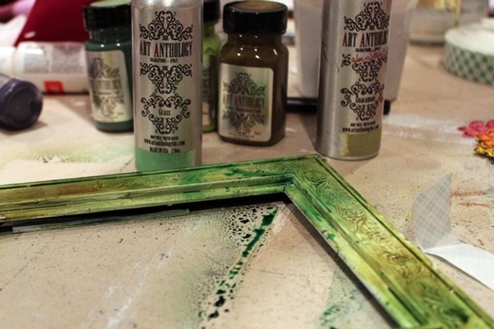 Grab an old yard sale picture frame and a stamp/die set from Heartfelt. I used the Arianna Blooms Set.