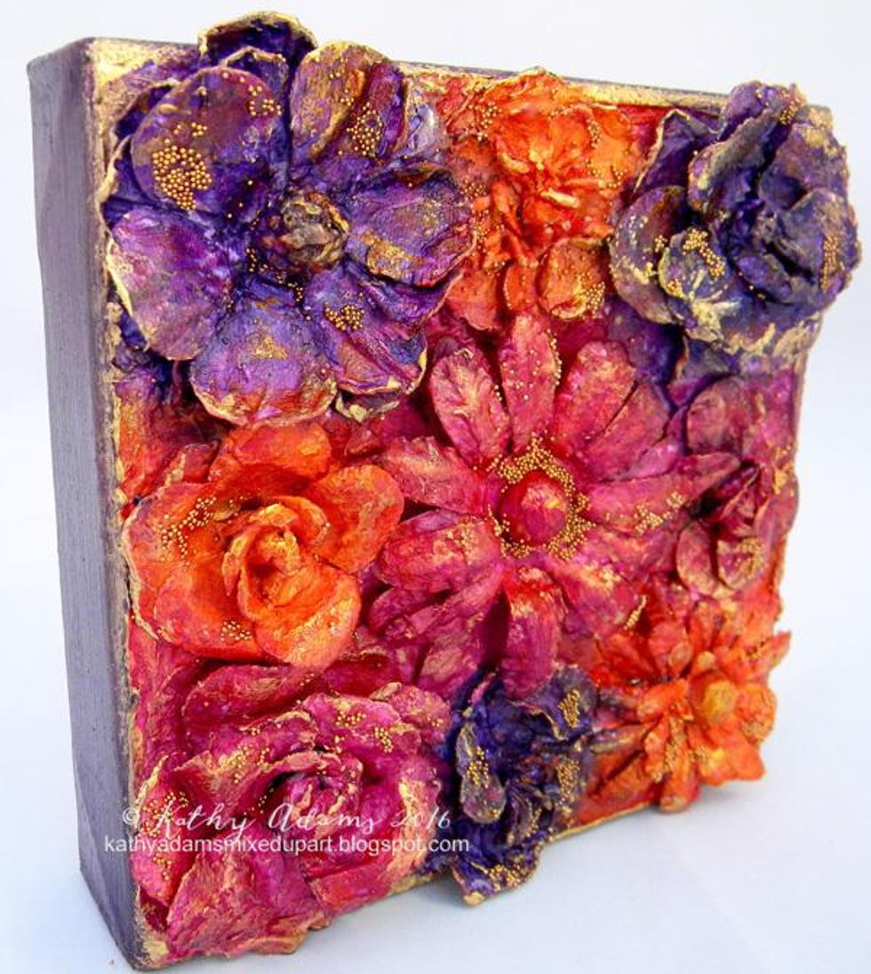 Grab some of those paper flowers you've been hoarding, a 6" x 6" canvas, and Art Anthology mediums, and lets make a spring bouquet! Pick 9 different flowers and arrange them on the canvas.