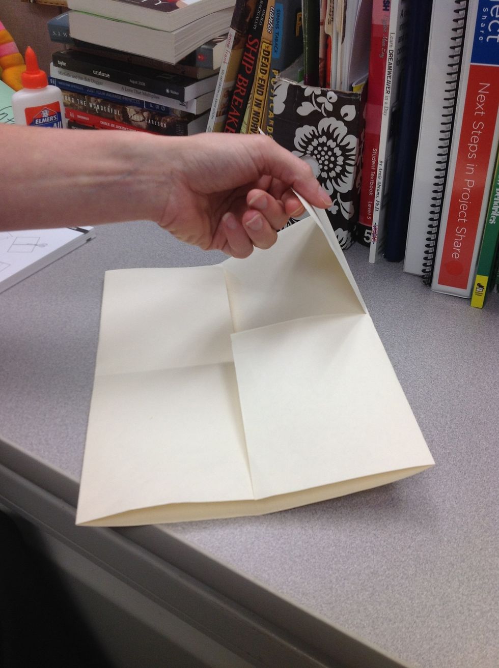 With the edges folded in to the center, fold the paper in half like a hamburger.
