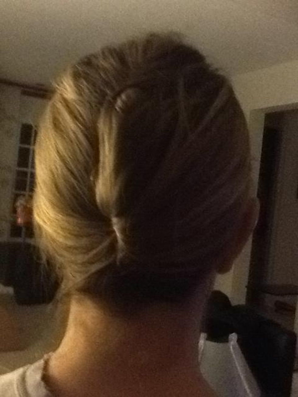 To hide the hair band, tuck it under the bunch of hair created from twisting in step 3. Secure hidden hair band with a bobby pin that matches your hair color.