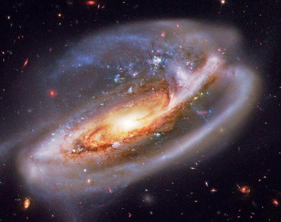 This galaxy has a lot of COOL colors (purples and blues). Cool colors tend to set a calm tranquil mood.