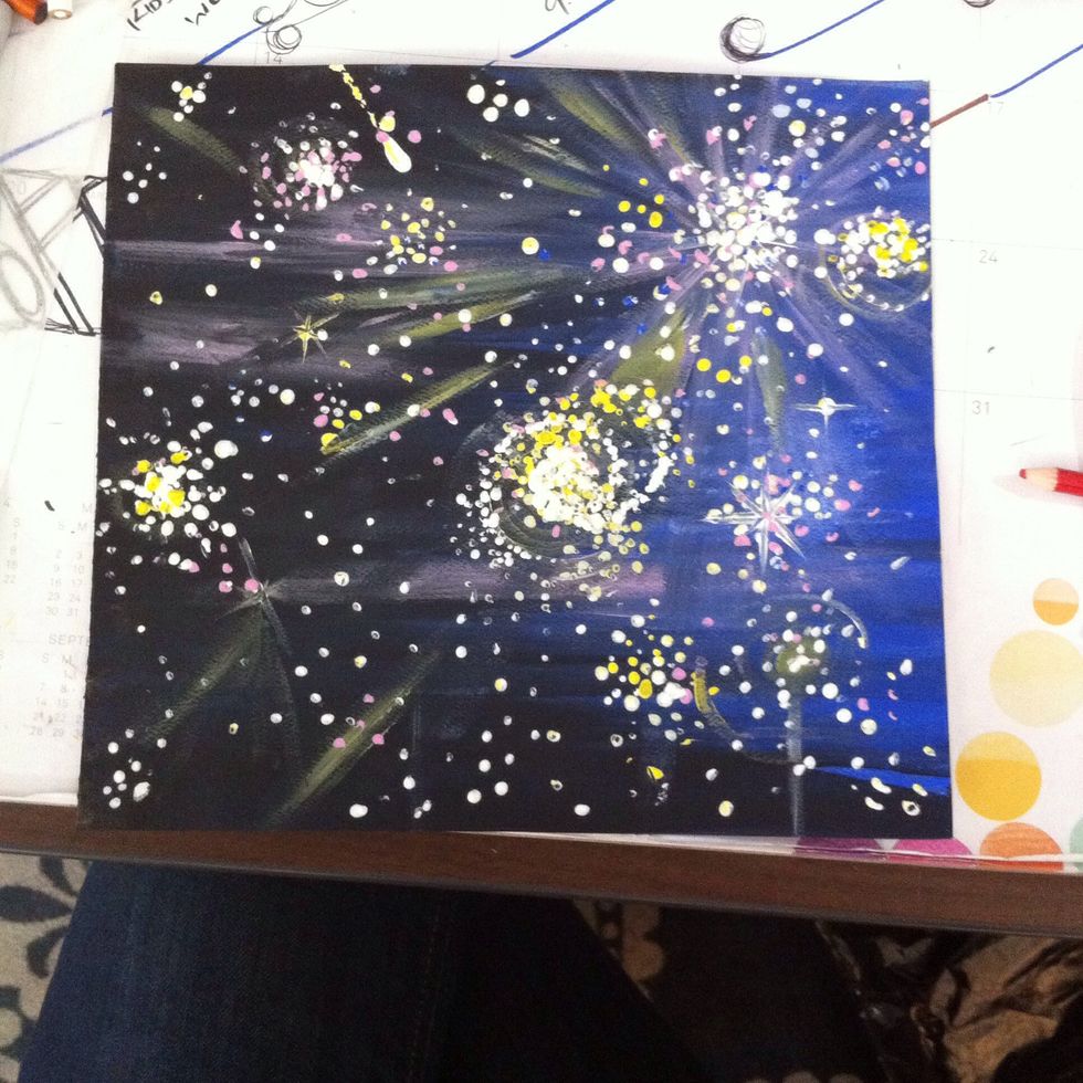 Add star bursts, swirls and anything else you want in YOUR painting. Planets, moons etc! Have fun!