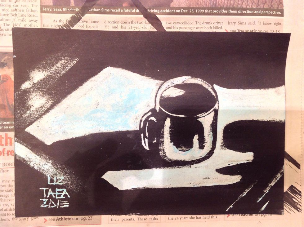 Lightly draw an image. I used Edward Hopper as a reference for high contrast and moody light. Contour images work well and images with a lot of dark spaces.
