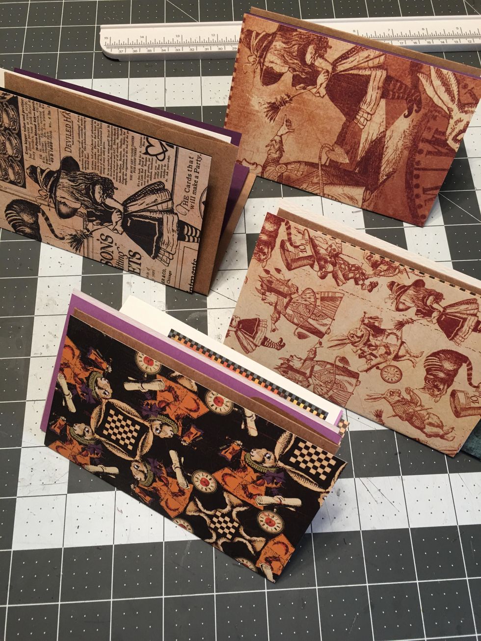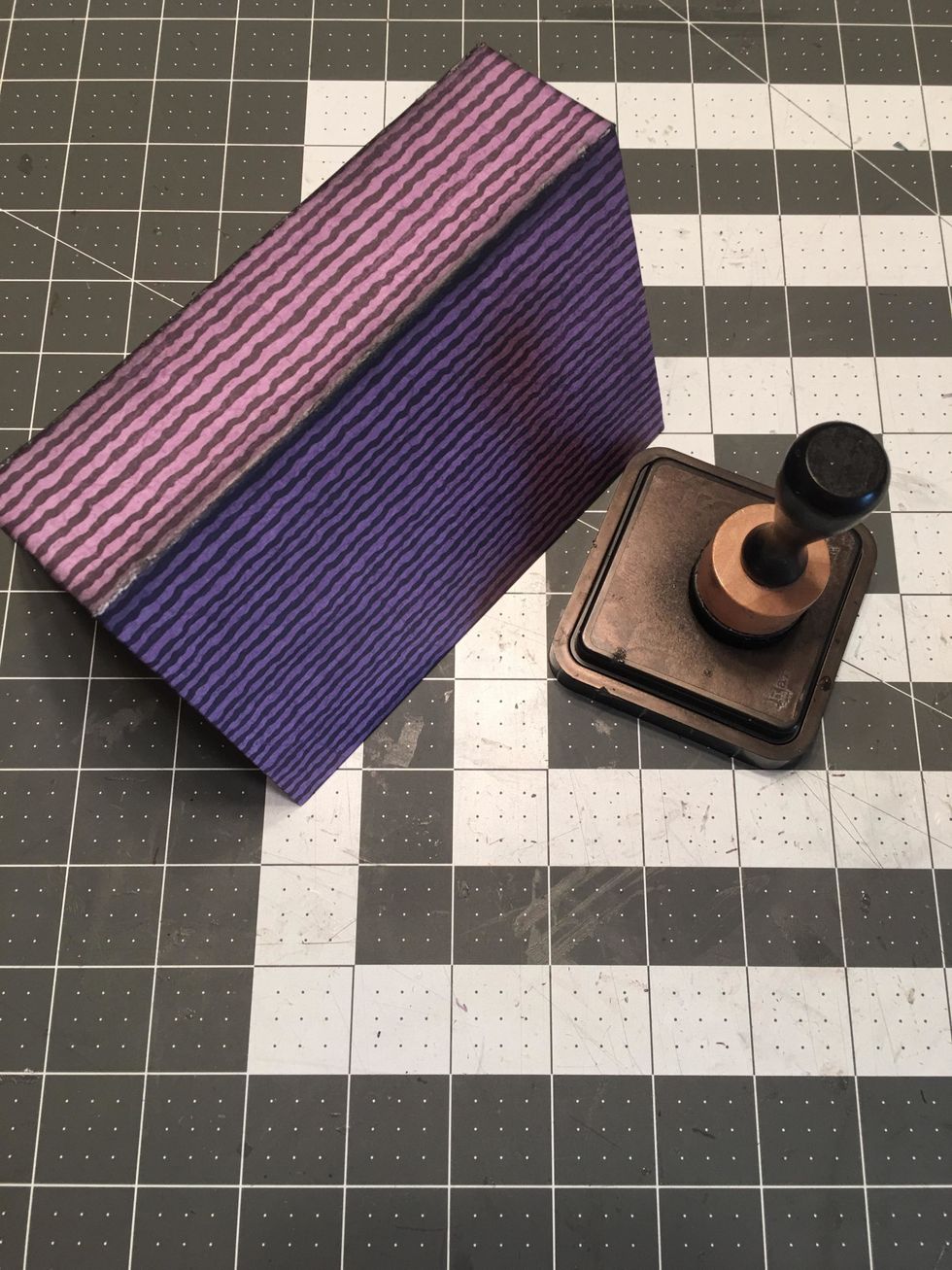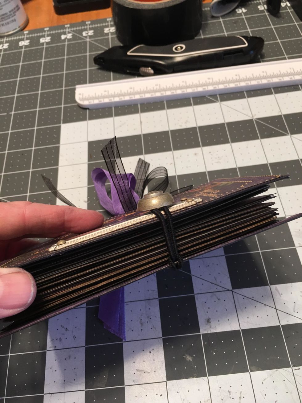 Cut cardstock in black and purples to 5.50" tall x 7" wide. Score the 7" side at 3.50" to fold the paper in half to make page signatures.
