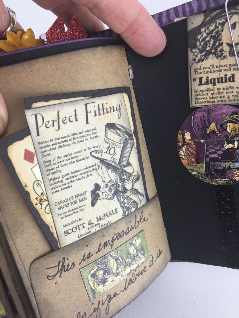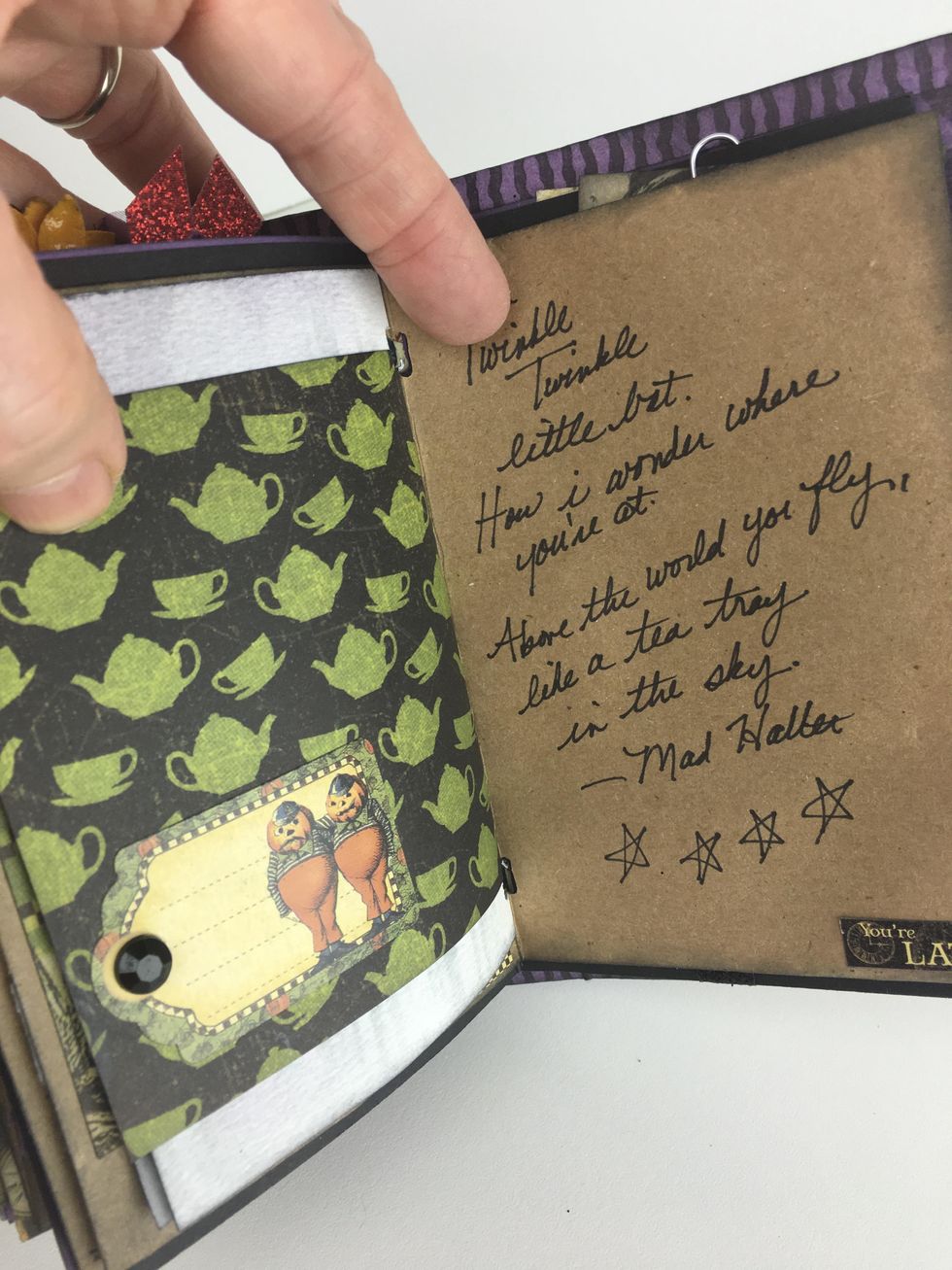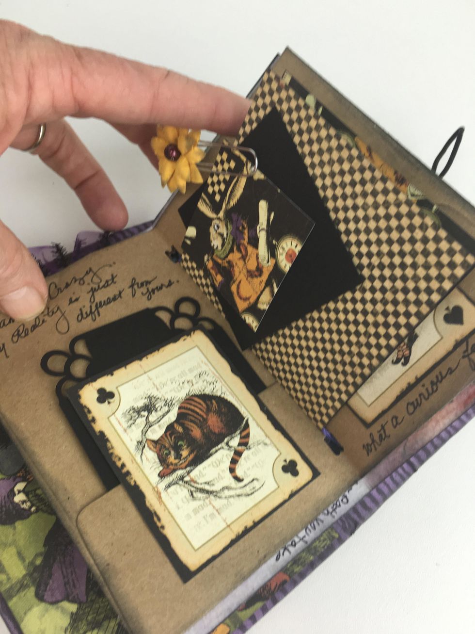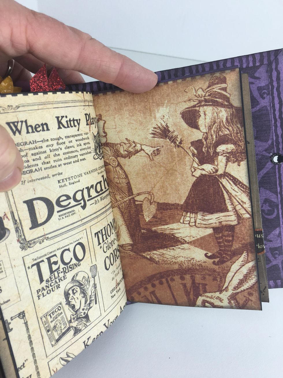 Select a cut apart card or an image on the paper that you'd like to use for your inside front cover like the Mad Hatter shown here.
