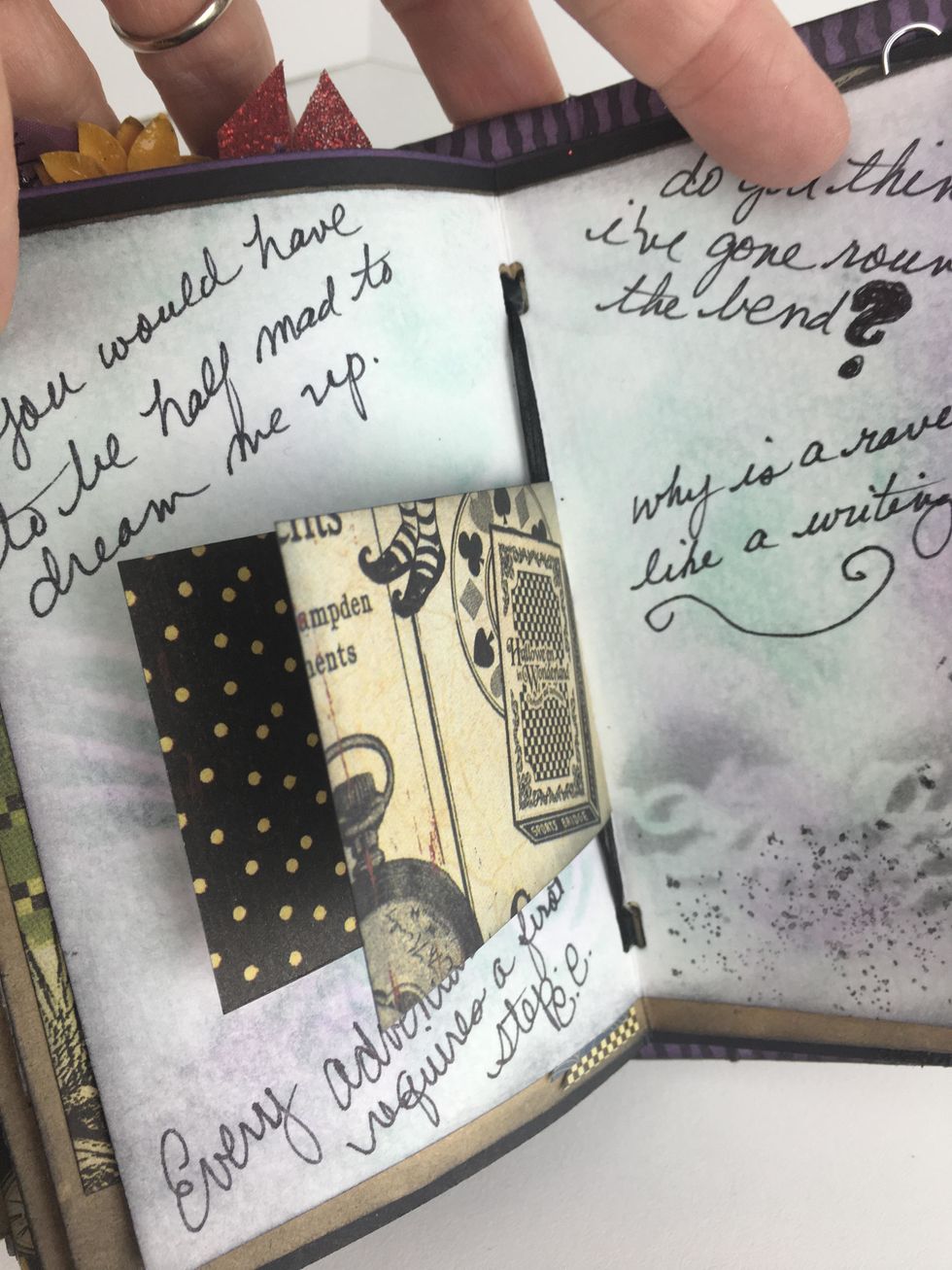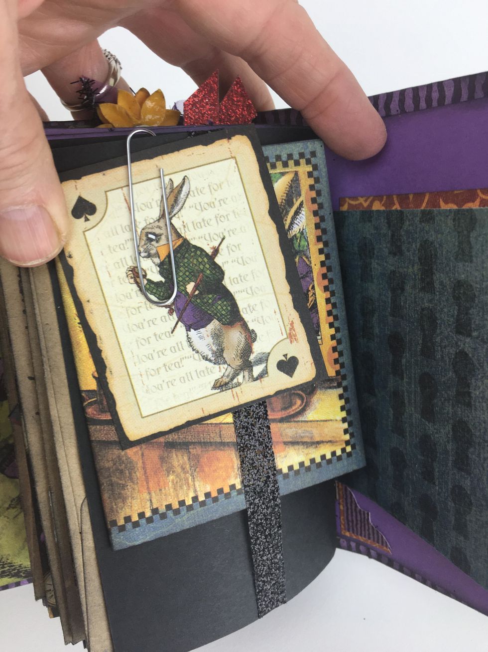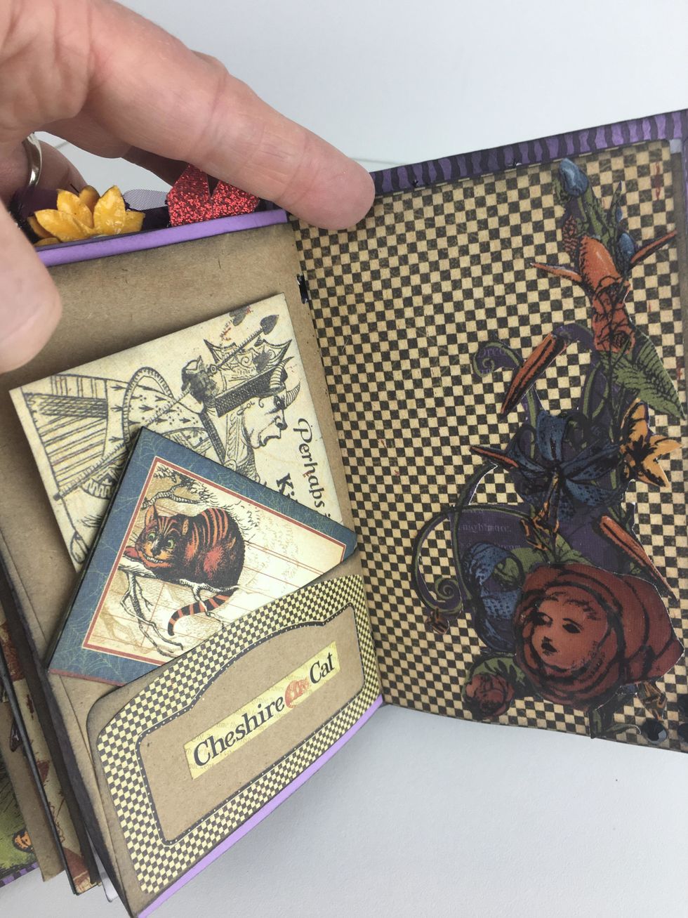 Select a cut apart card or an image on the paper that you'd like to use for your inside front cover like the Mad Hatter shown here.