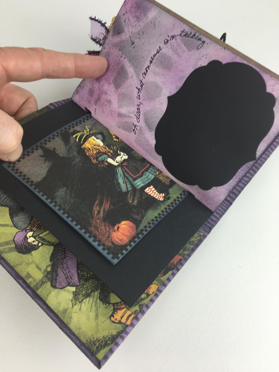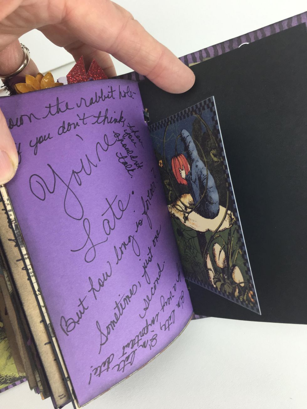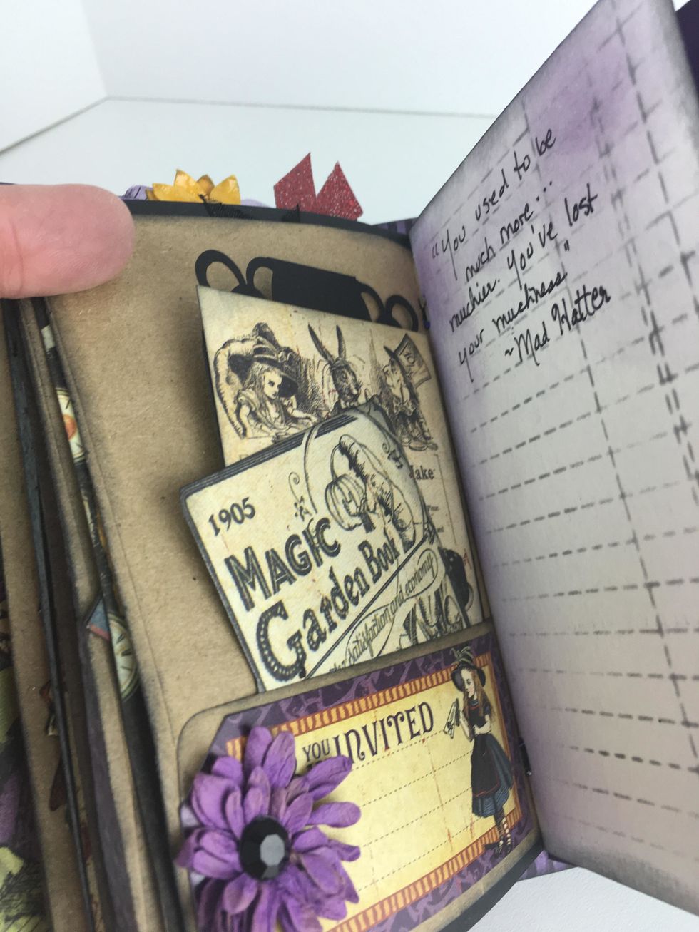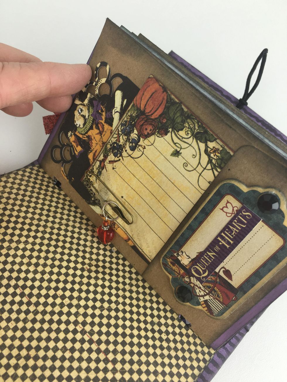 Select a cut apart card or an image on the paper that you'd like to use for your inside front cover like the Mad Hatter shown here.