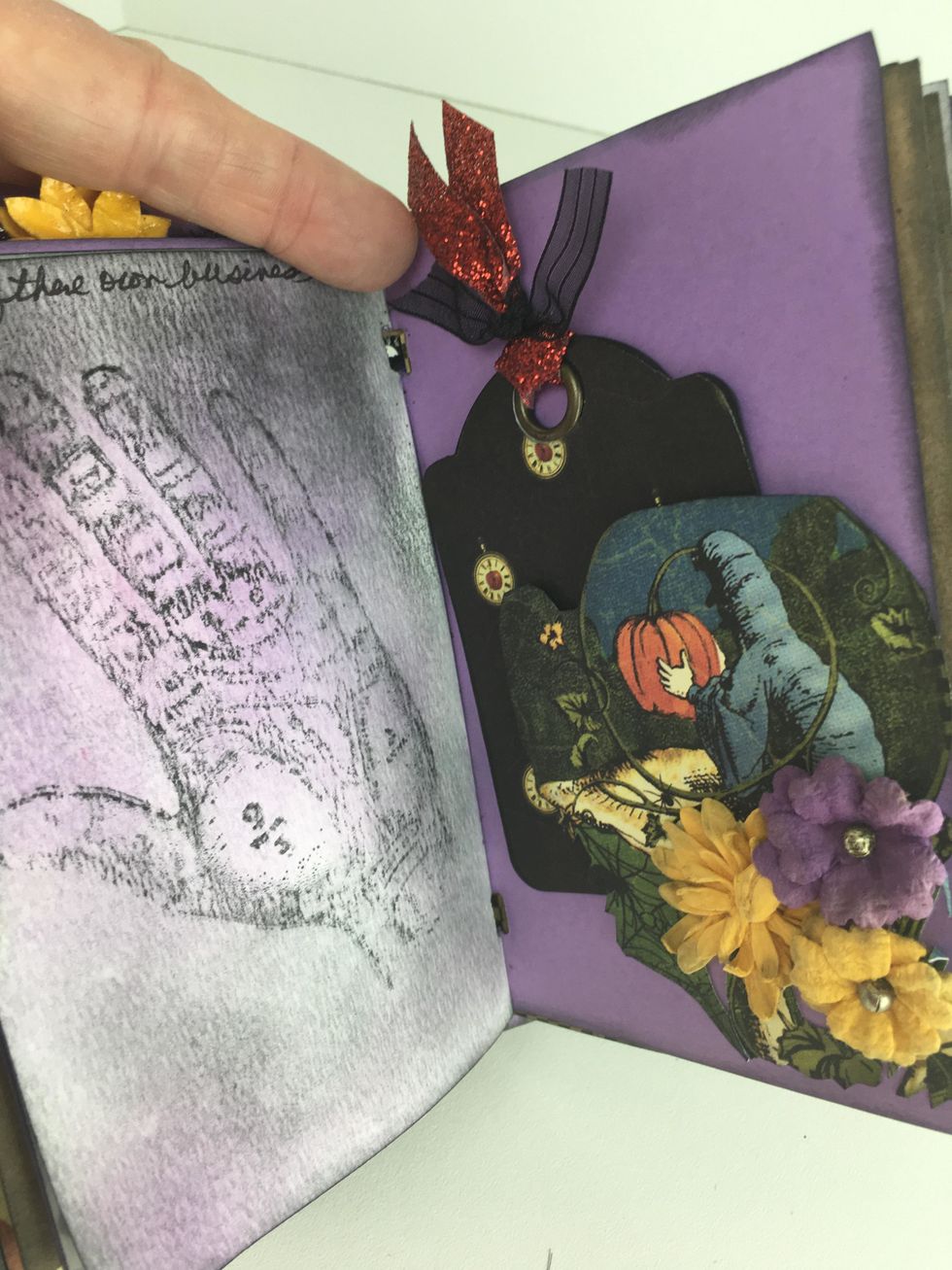 You are now ready to add trim, tags, spider webs, quotes, notes etc. into your junk journal.
