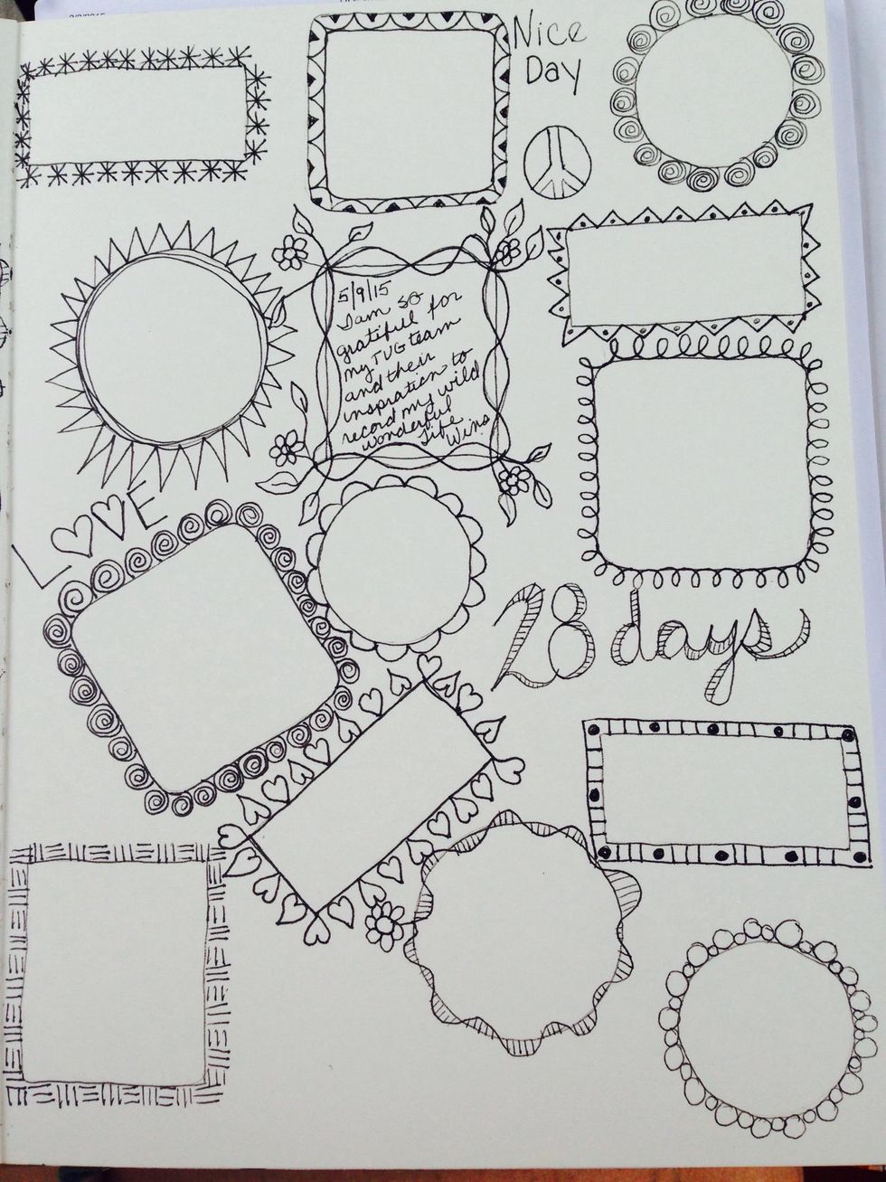 Now comes the fun part. Doodle some borders around the shape. Repeat patterns if you can't think of different ones for each shape, that's what I did!