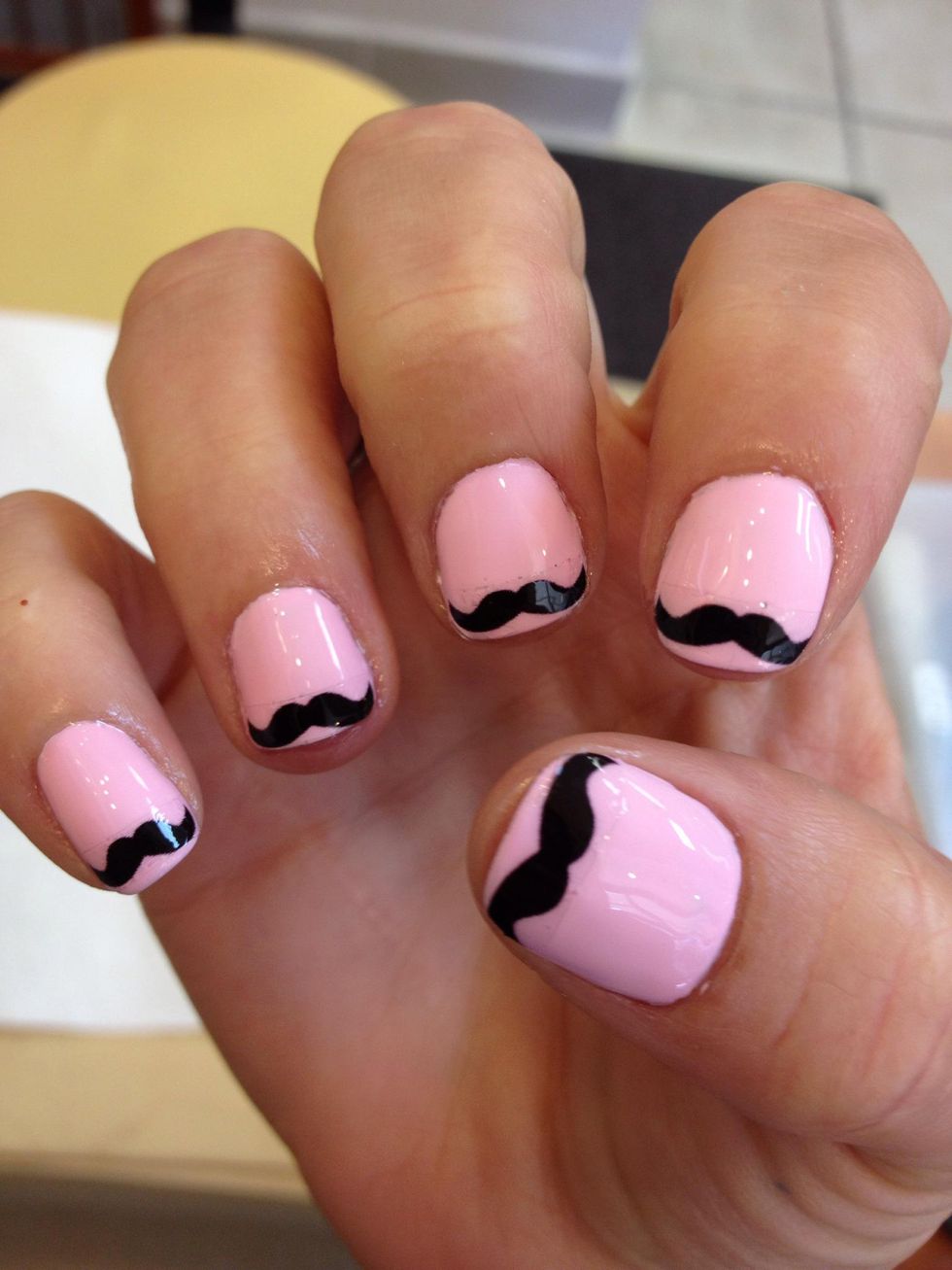 Mustaches are cool again! They seem to be all the craze these days. I found these nifty handlebar mustache nail art decals to create this hip mustache manicure.