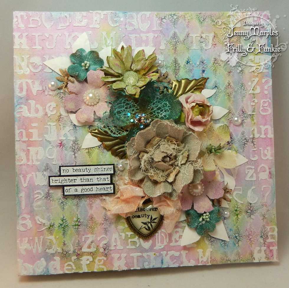 From the fabric covered sheet cut two of the smallest flowers on the Jumbo XL die and two mini flowers. Cut a further mini flower from the uncovered substrate sheet.