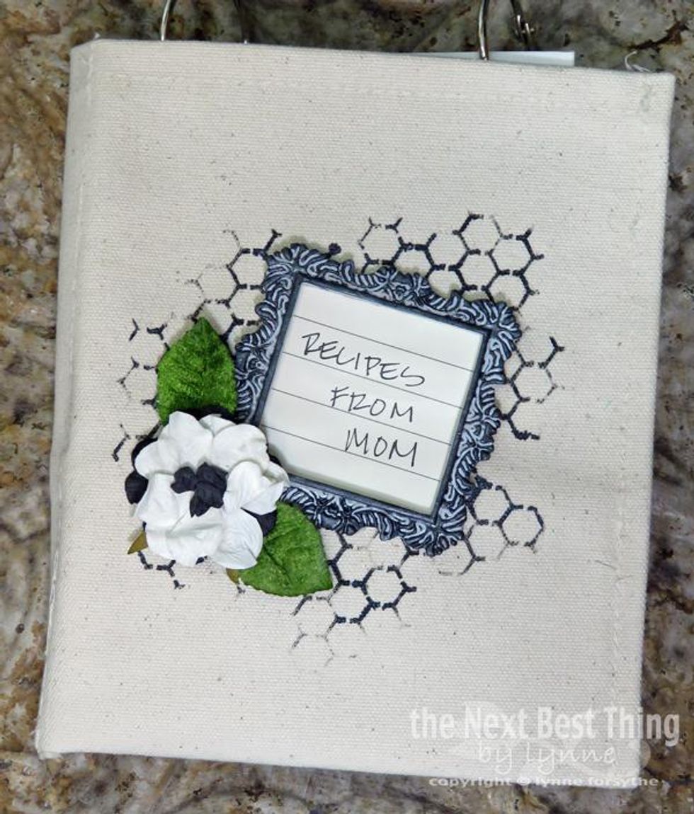 I created my cover by applying acrylic paint through The Crafter's Workshop ~ Chickenwire Reversed stencil onto Canvas Corp Brands ~ Canvas Portfolio.