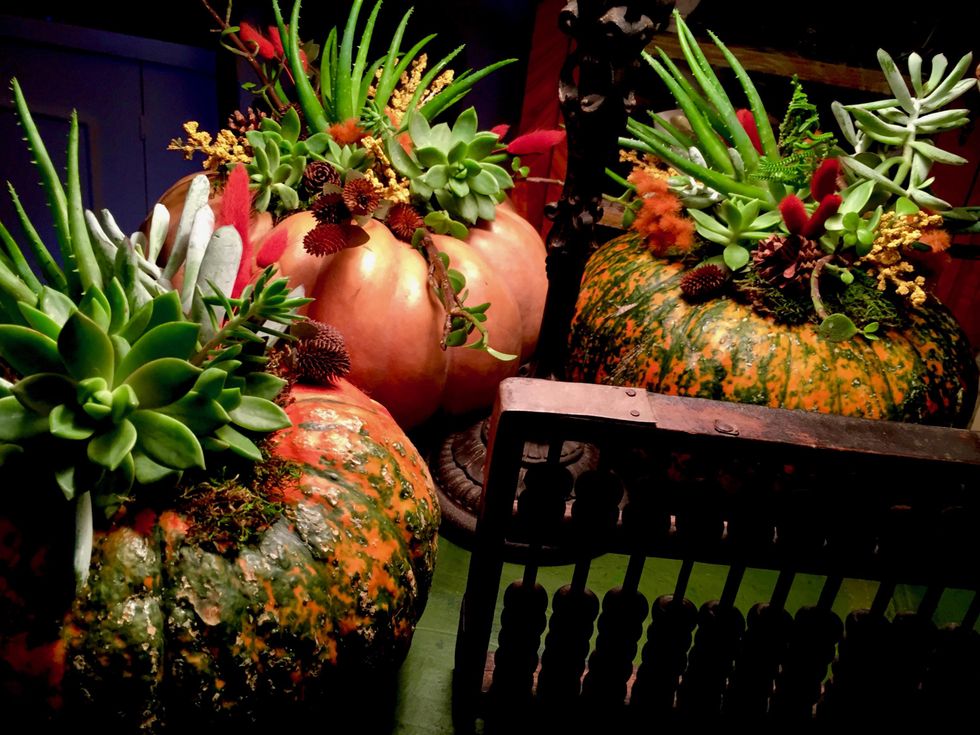 Carefully cut and tear your moss to fit in the top cavity of your pumpkin, then hot glue it in place with your glue gun. Now you are ready to begin adding the best clippings of your succulent plants.