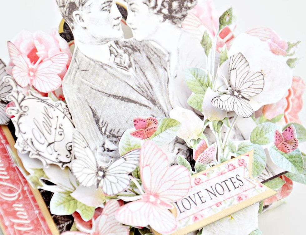 Attach the Love Notes Chipboard Tag and some butterflies as shown.