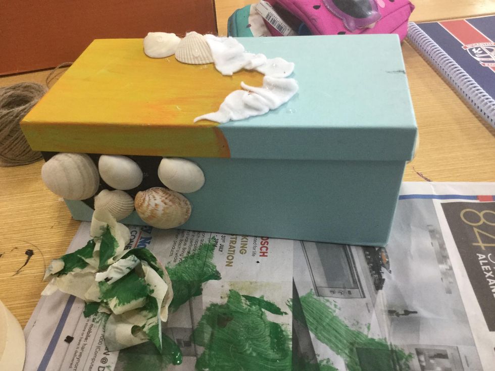 To add more detail, stick on white felt to the edge of the beach so that they look like the tide.It also gives the box surface more dimension