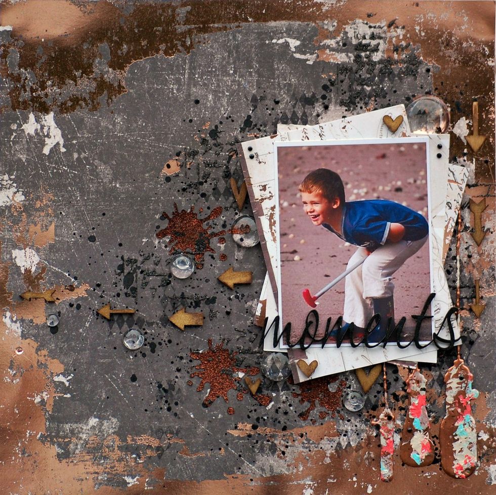 Add the 'Moments' word to the bottom of the photo. Add some Arrows down the right side of the photo & some hearts under the edges of the photo & big glass dome to the top right of photo layers