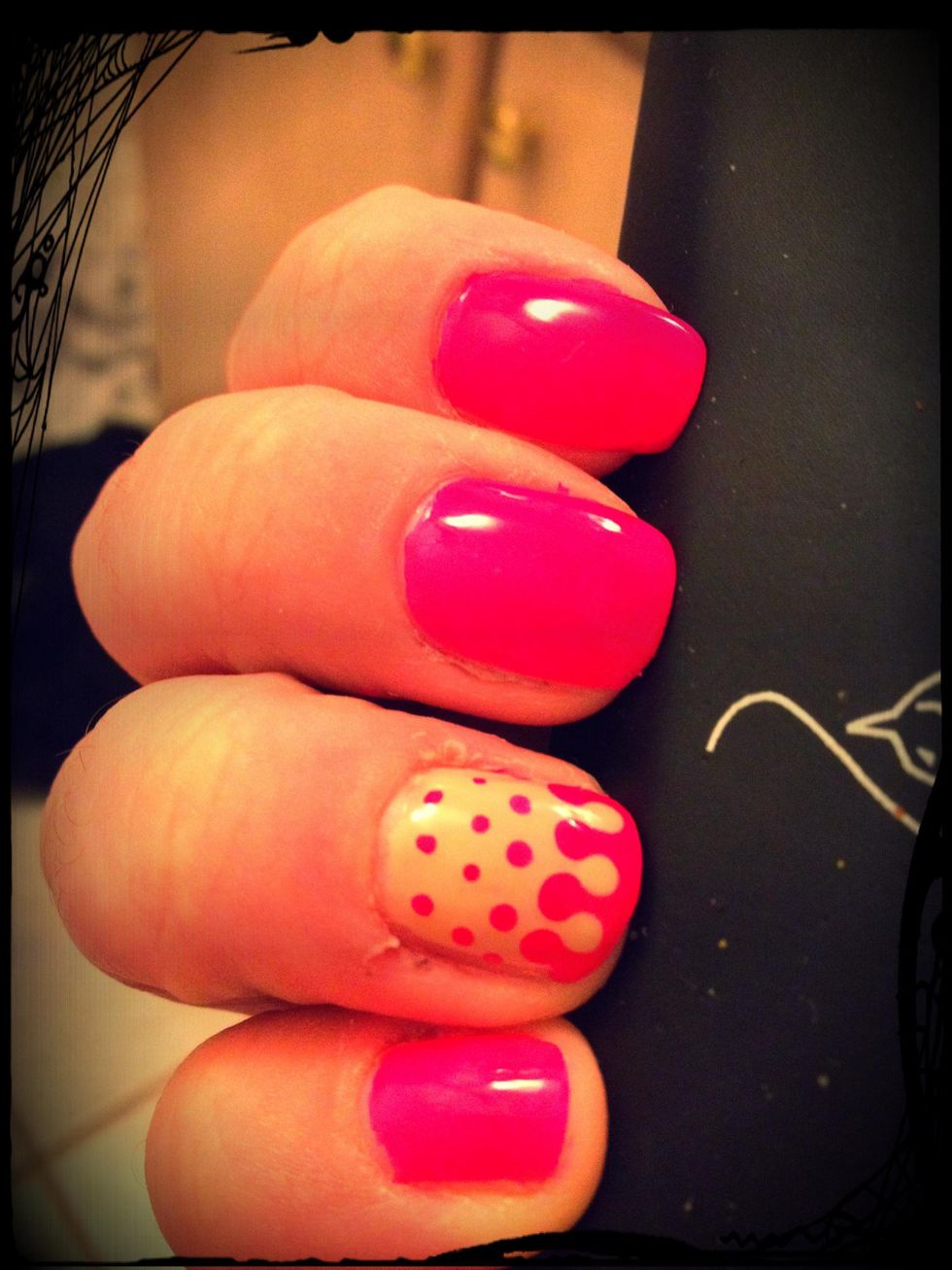 Paint all nails one color except one, paint your accent nail two toned. I painted mine diagonally