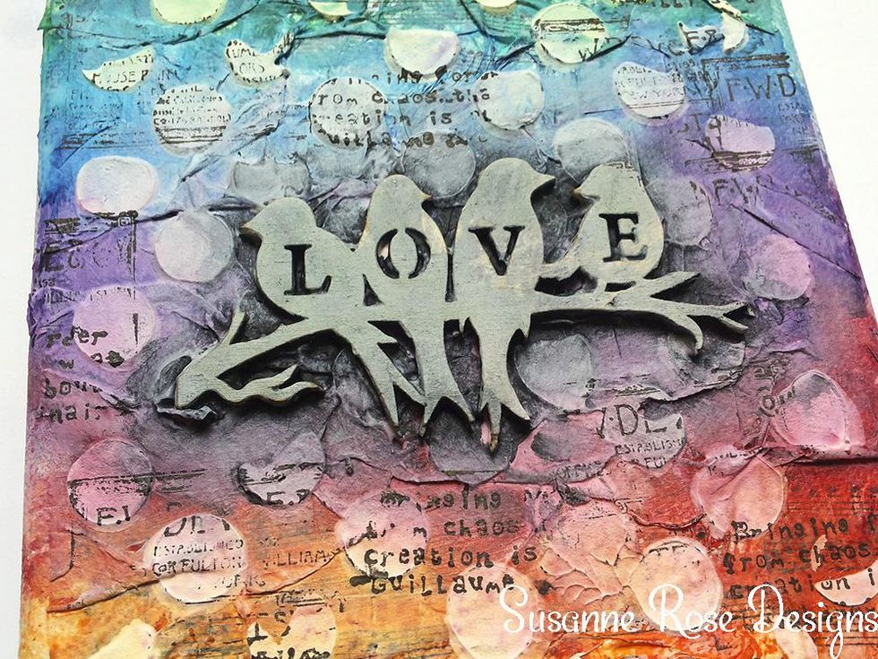 Add the first layer of color with Art Anthology coloration sprays: Timeless, Valentine, Plush, Peacock Feathers, Waimea Bay.