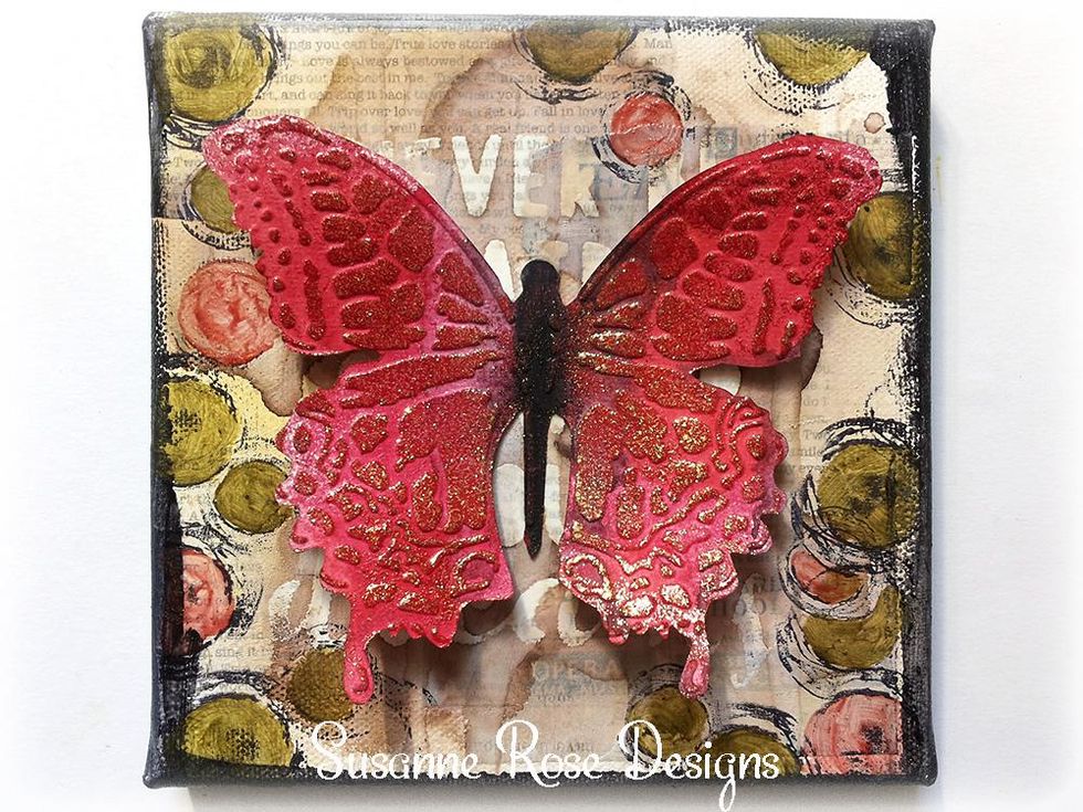 Wipe the Embossing Pad slightly over the textured butterfly and use WOW! Heart Throb Glitter.