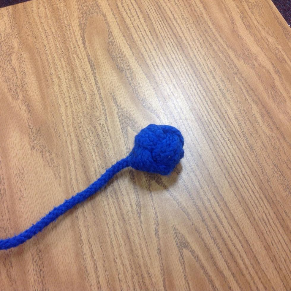 Push the marble down, slide your rope through and wrap it around three times and pull tight.