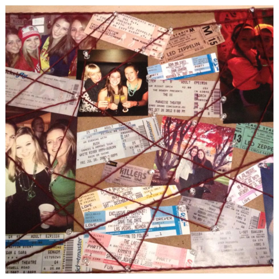 Place pushpins throughout your cork board and wrap your yarn around the pins, creating a cool pattern with the yarn. When you are finished, tie the end of the yarn to a push pin.