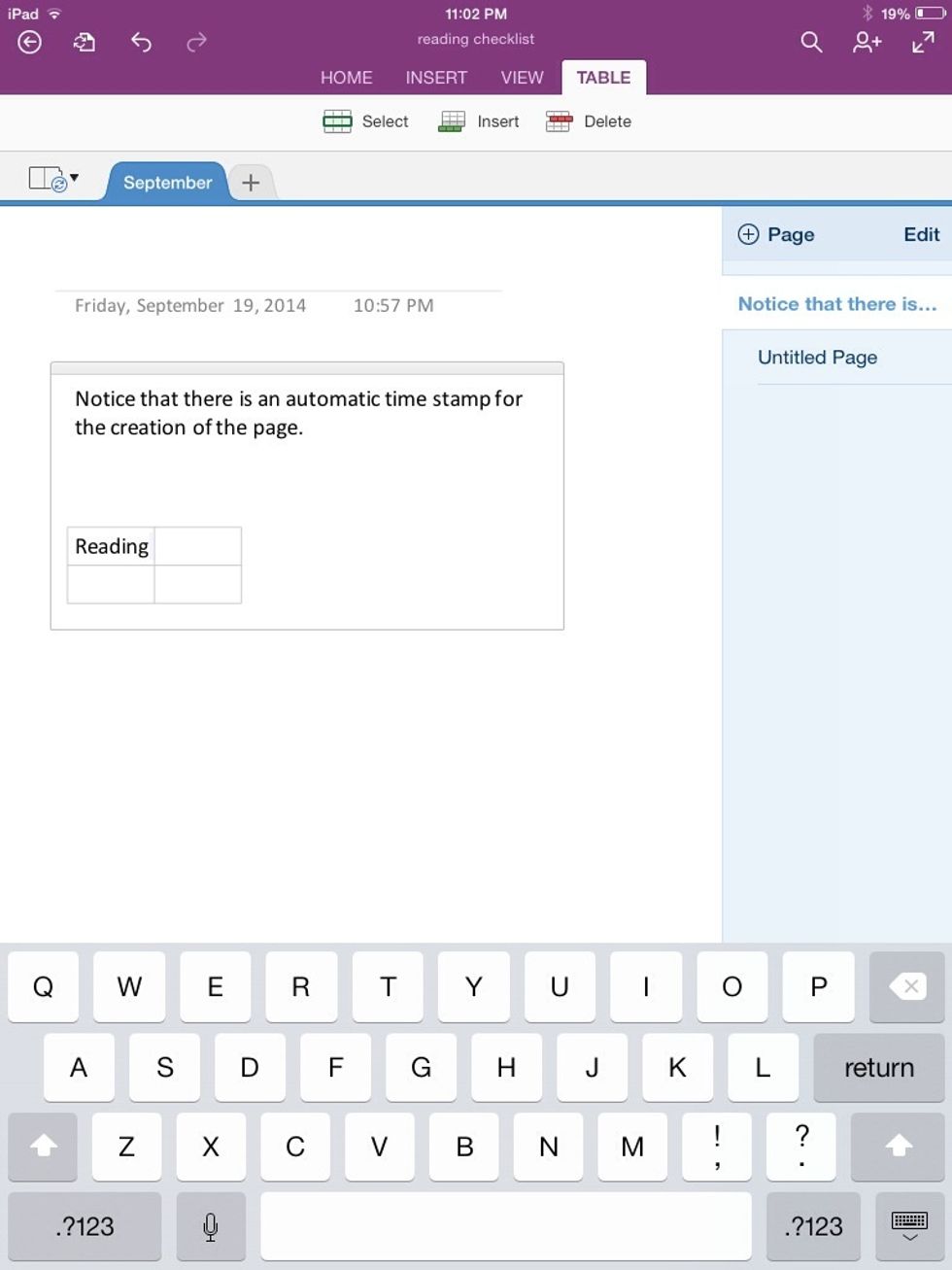 Tap and hold to rename the first tag in the notebook. This is a reading log checklist, so I will keep track by the month. I could also give each month it's own page.