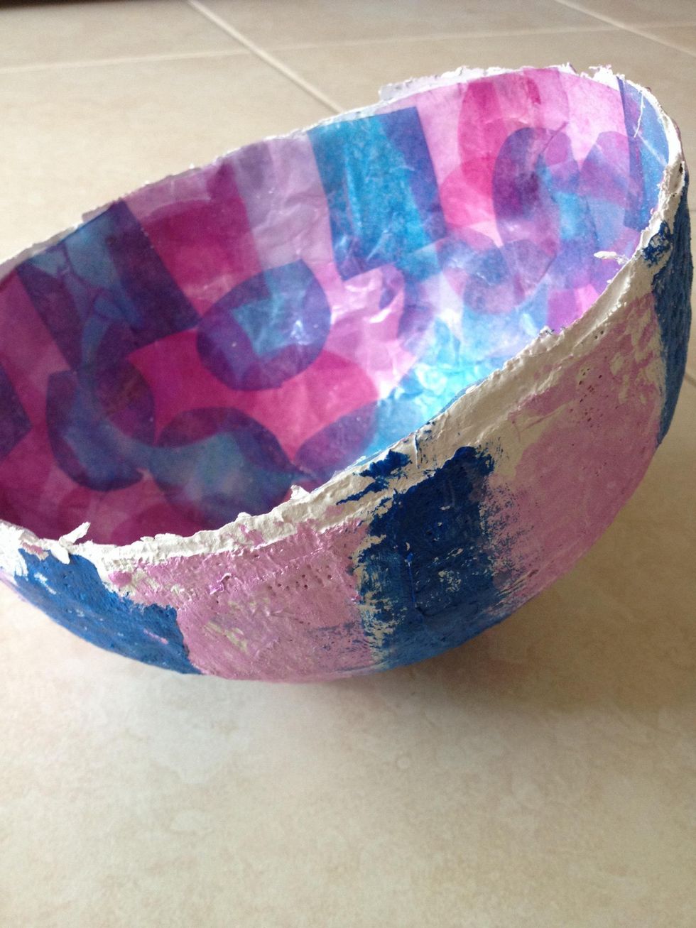 Continue until the top half (or as much as you want) of the balloon is covered. It is helpful to create a defined edge with the tissue where you want the rim of the bowl to be.