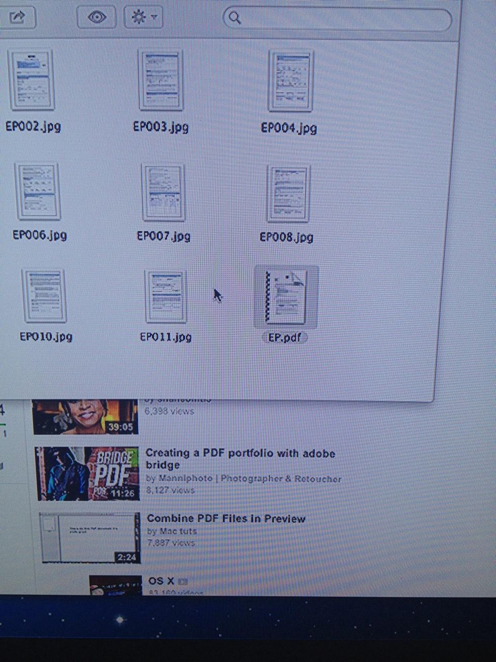 Select all the photos you want to put in your pdf file. Right click open in preview (Mac default program)