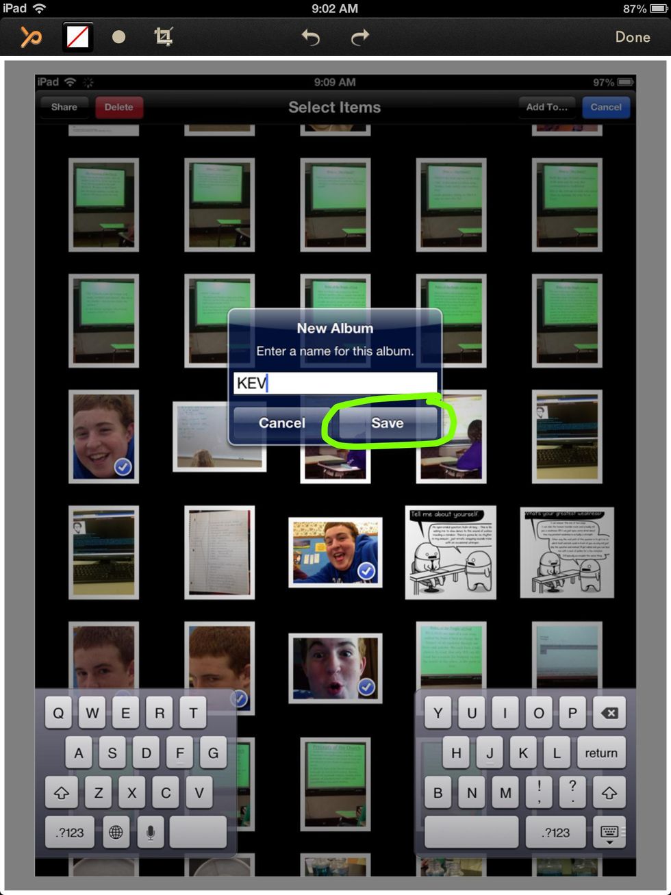 Name your album by typing the name that you want in on the keyboard