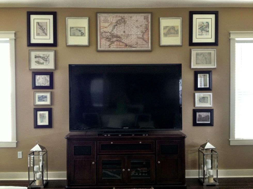 Start by arranging your frames in the layout you will have them displayed on the wall. This way you can move the maps around until you get the overall feel you are happy with.