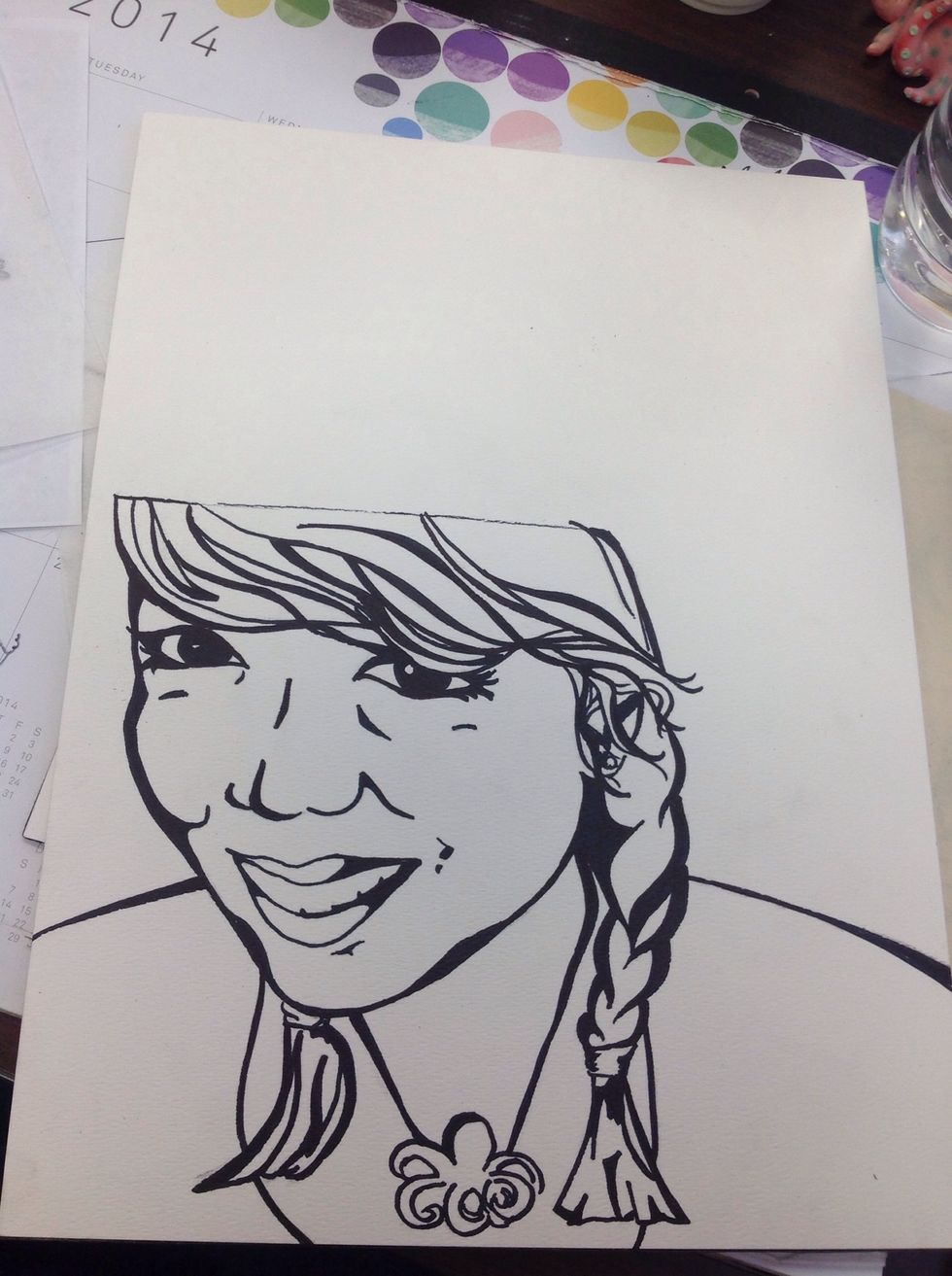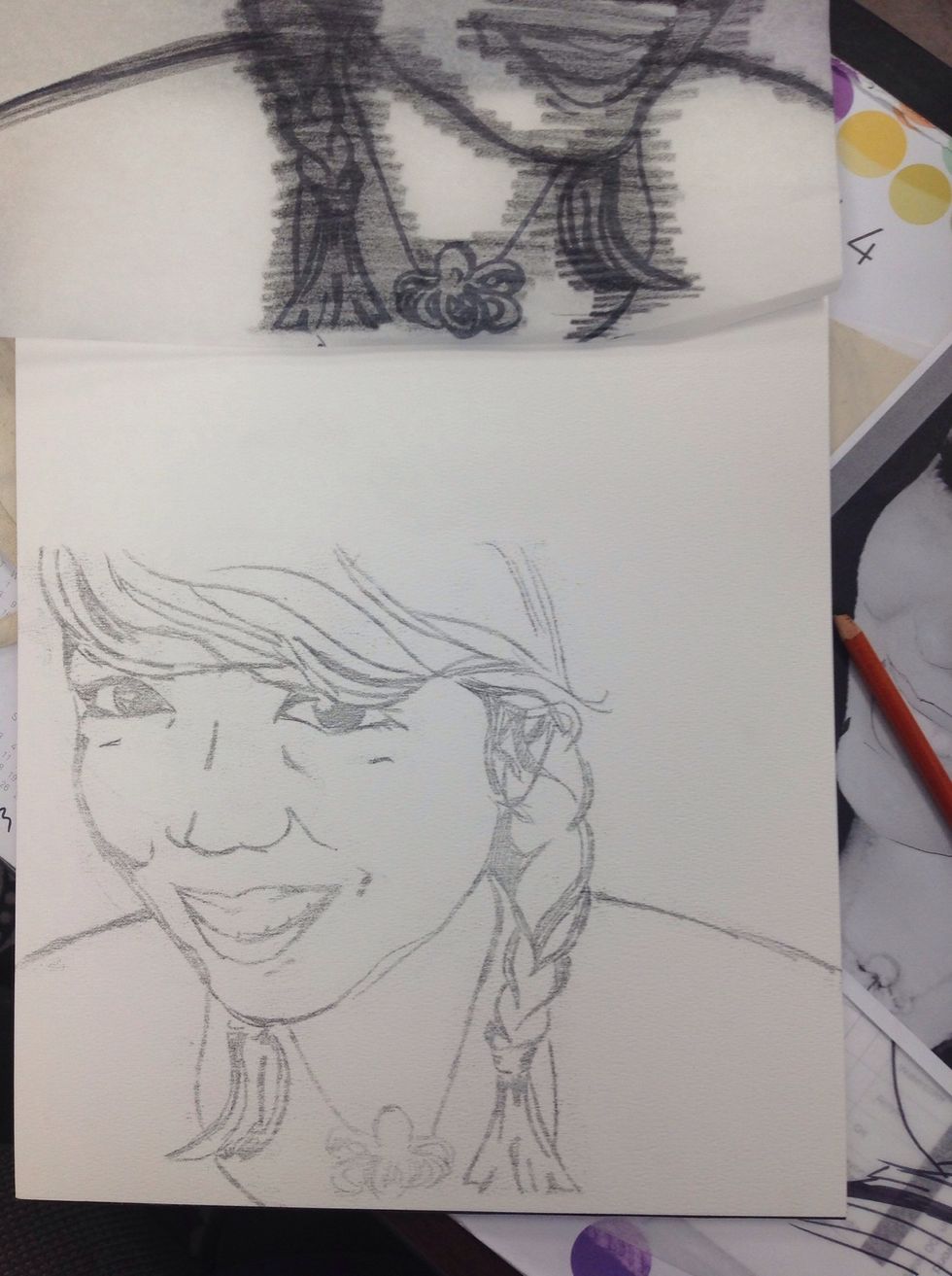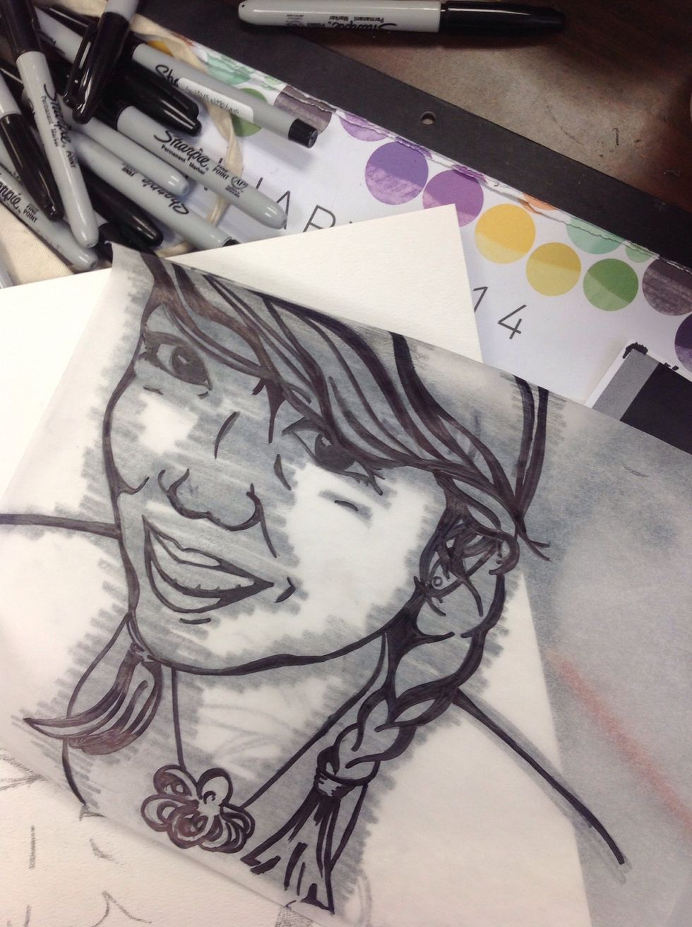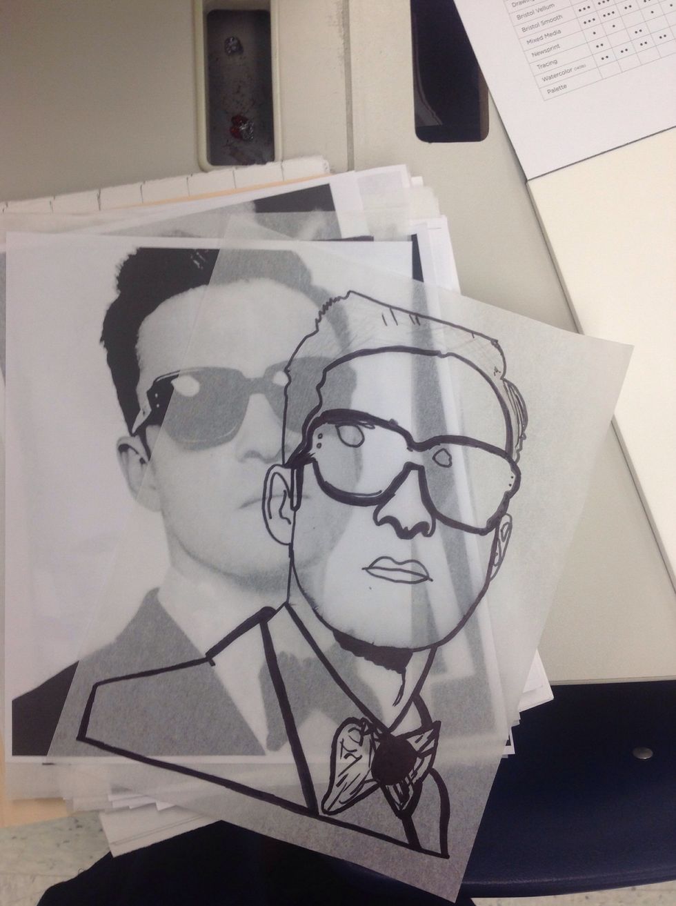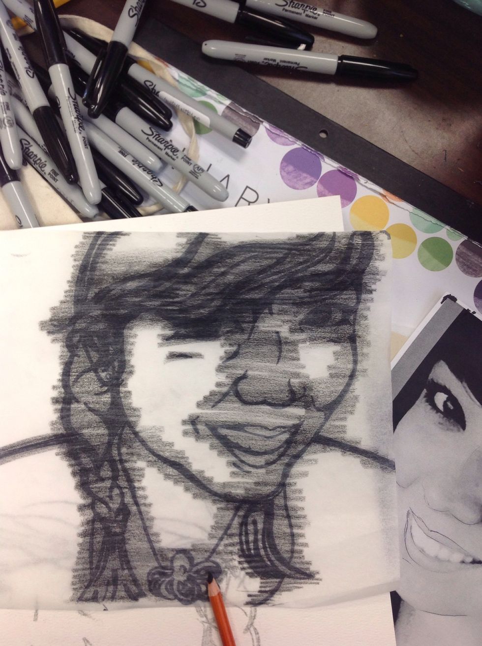 The first step in creating your portrait will be to trace an outline of your portrait using tracing paper and a sharpie.Make sure you have thick and thin lines to create value and emphasis.