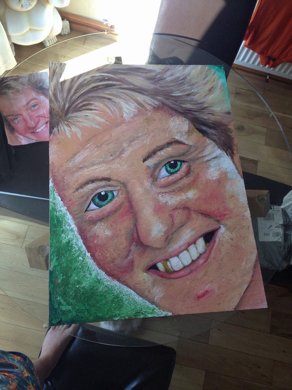 Finally the hair! I have used yellow ochre, brown and white. I have opted for the use of a paint brush rather than a pallet knife in order to gain a hair like texture.