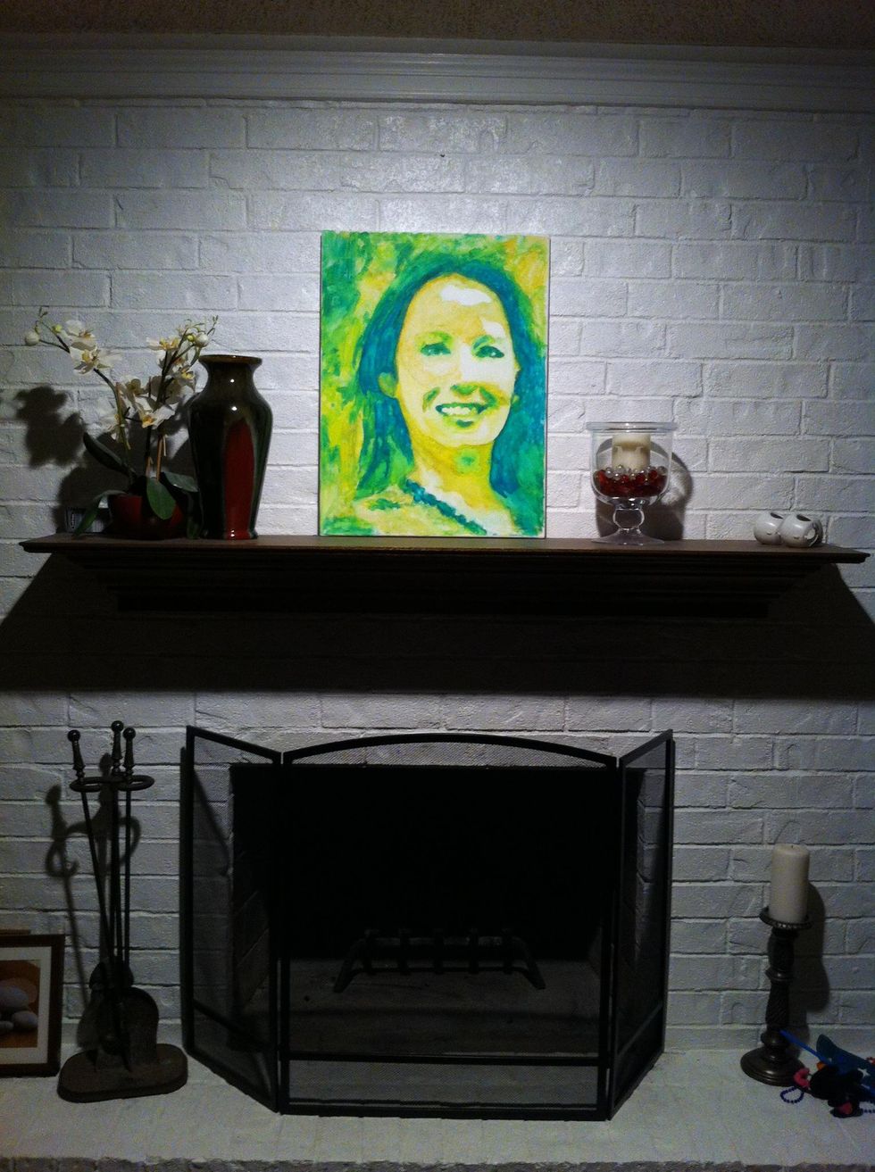 I used a picture that was taken of me and "posterized" it with digital photo editing software. My picture is posterized to 6 layers. I then blew up my picture to cover my 18"x24" canvas.