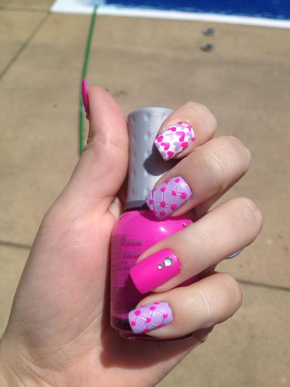 Step 8: Use Pink nail polish and dotting tool to place polka dots where lines intersect.