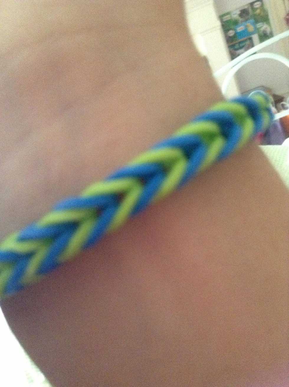 Gather suppliesTake the first band.Twist it into an 8.Use 2 pegs and place the 8 band on the loom.Take your second band.And place it like a 0 on top.Then take a third and put it in just like the second on the top.End products