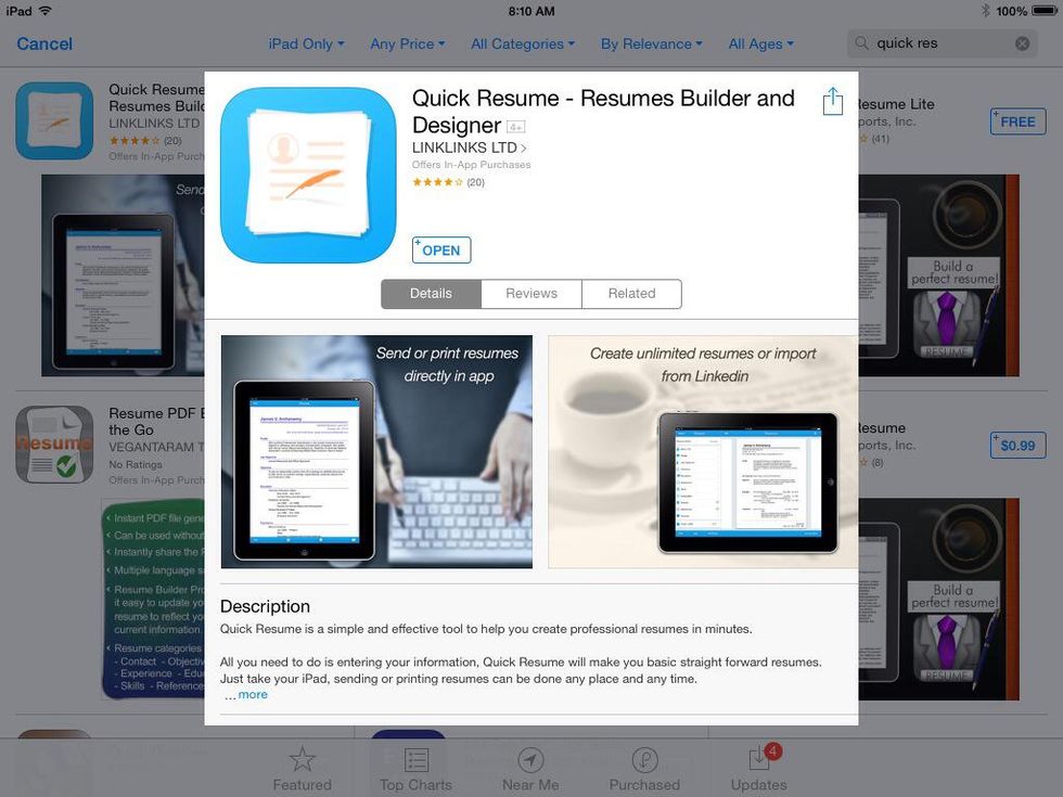 Download and open the free Quick Resume app. No registration or account setup is required!