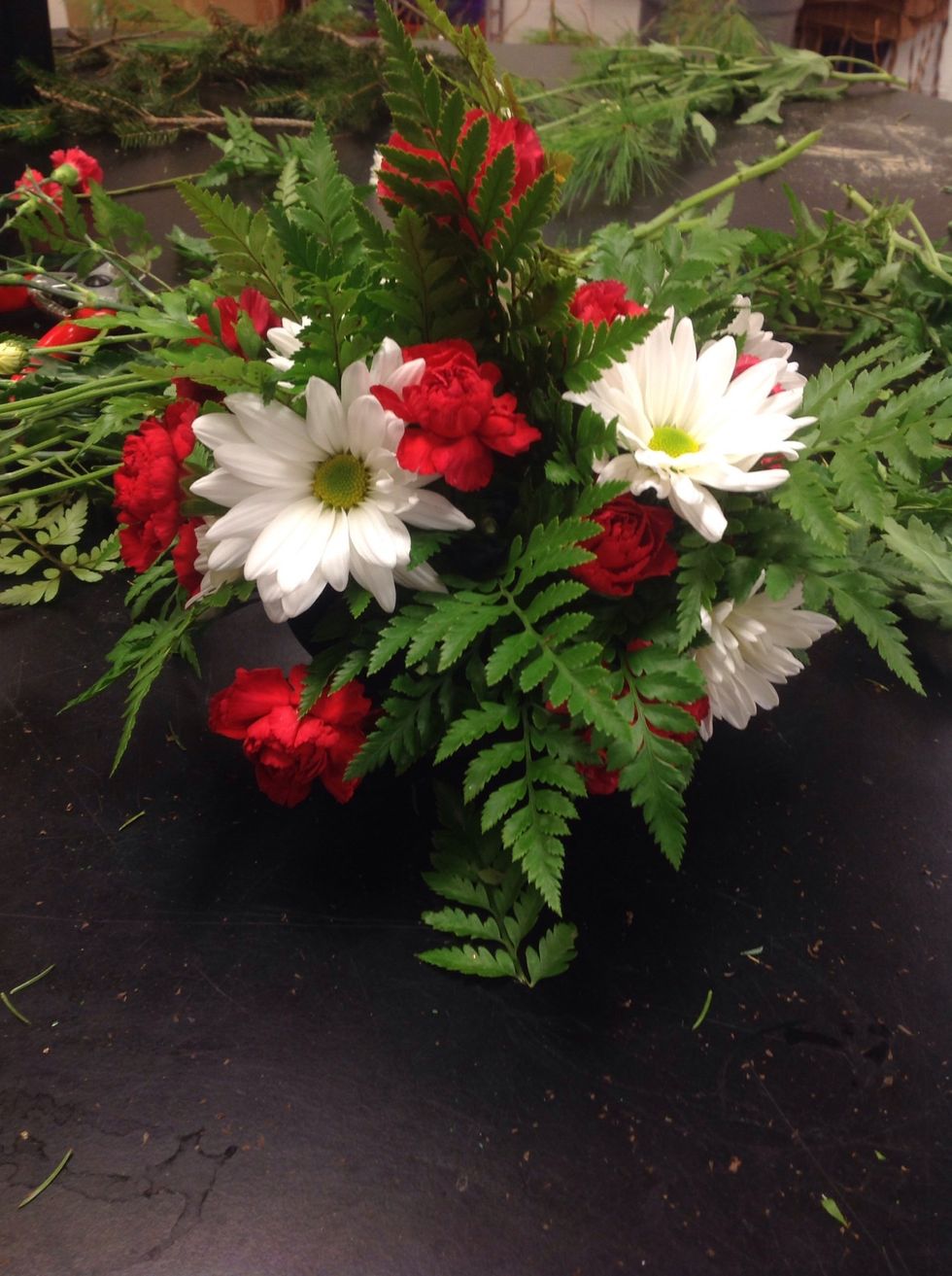 Gather all of your flowers. Choose which one will be your main flower (in mine the red carnation) and your secondary flower (the white mum).