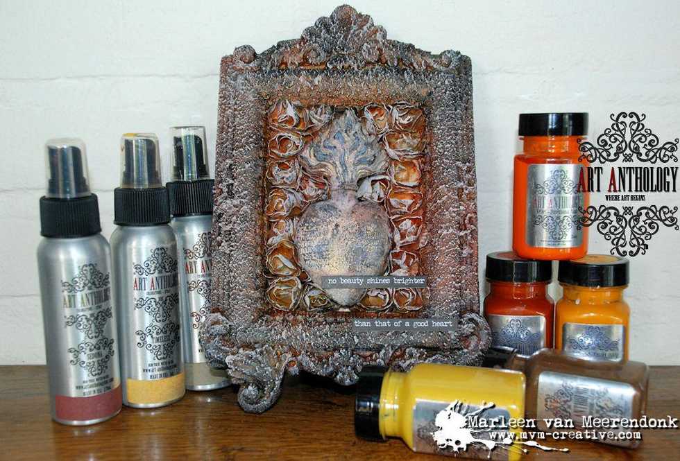 Drybrush everything with white gesso to get some depth. Add a little black paint/gesso/velvet with your vinger to the heart so you see some more depth. Add a quote/text and ready!!