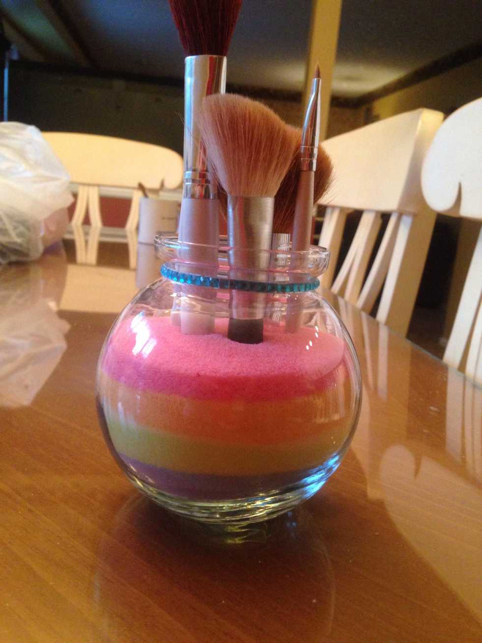 A much cheaper version of sand art! With a little bit of time you can create "sand" art as a makeup brush holder for half the price!