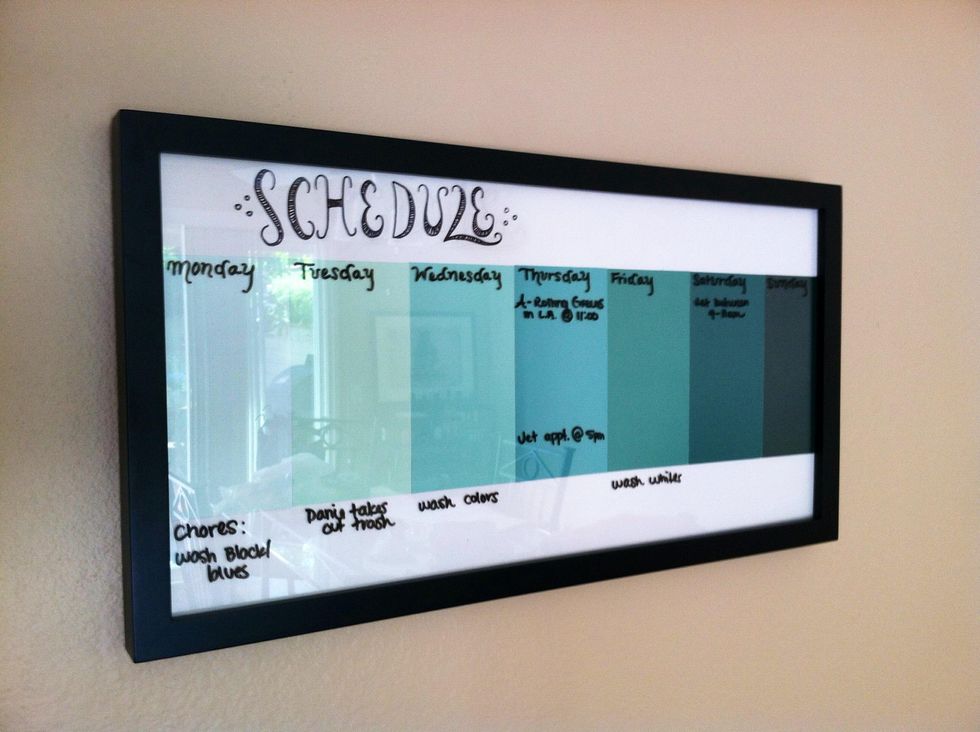 Lay the paint strips down where you marked your guidelines on top of the glue. I added my title using sharpie so it wouldn't erase away.