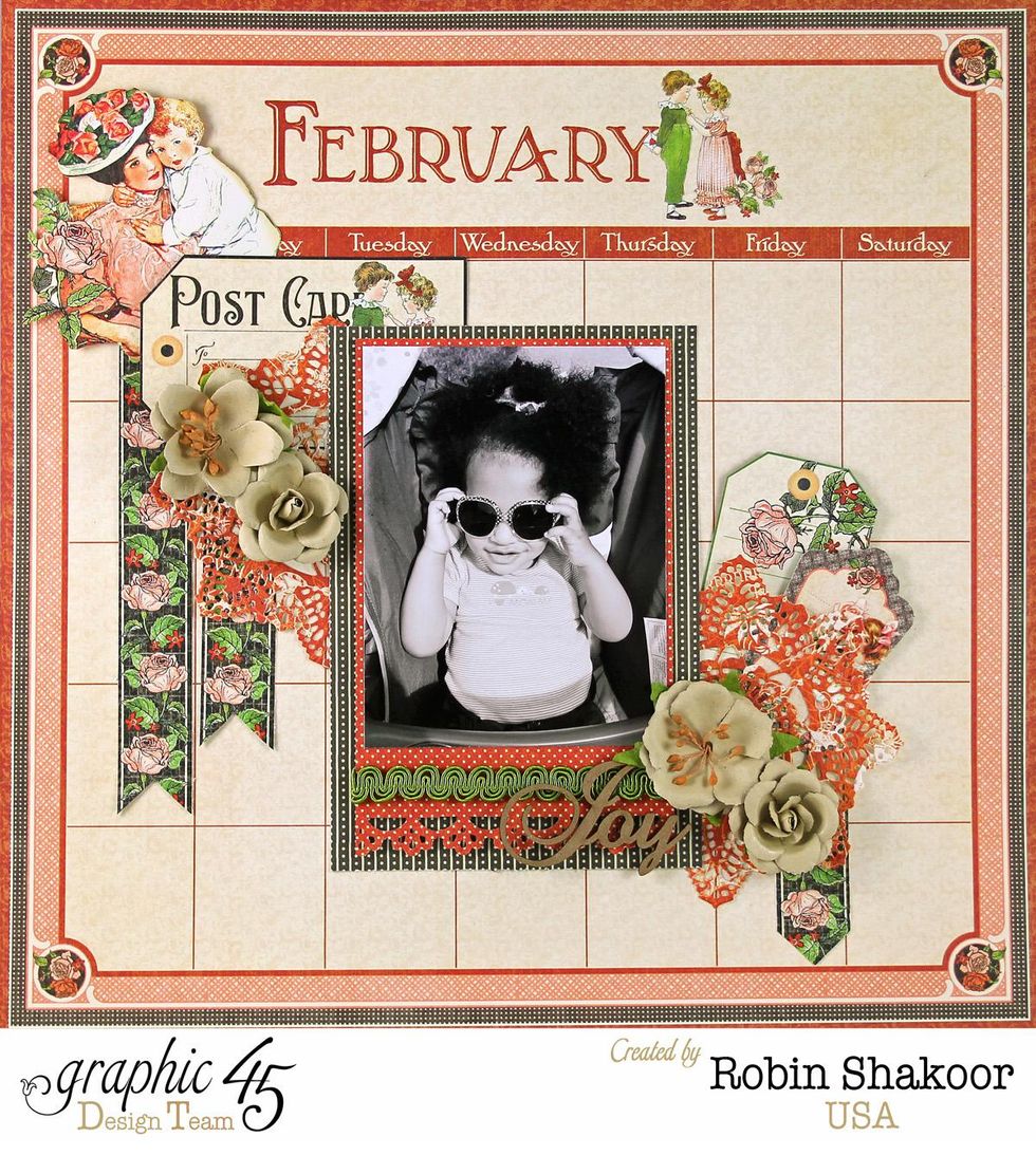 Cut tag shape from "February Collective" and add tag from the Tags and Pockets sheet. Place tags behind die cut doily at the lower, right side of the photo mat.