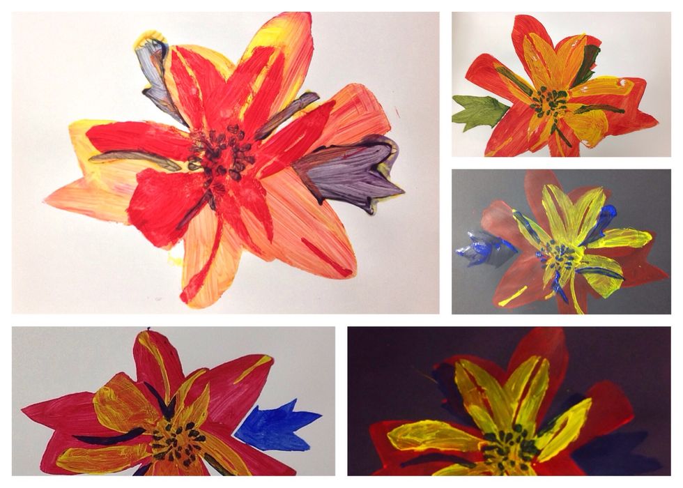 Look up the work of Georgia O'Keeffe to get an idea of how an extreme close up of a flower looks in a drawing/painting. Then look up Andy Warhol and his screen print projects.