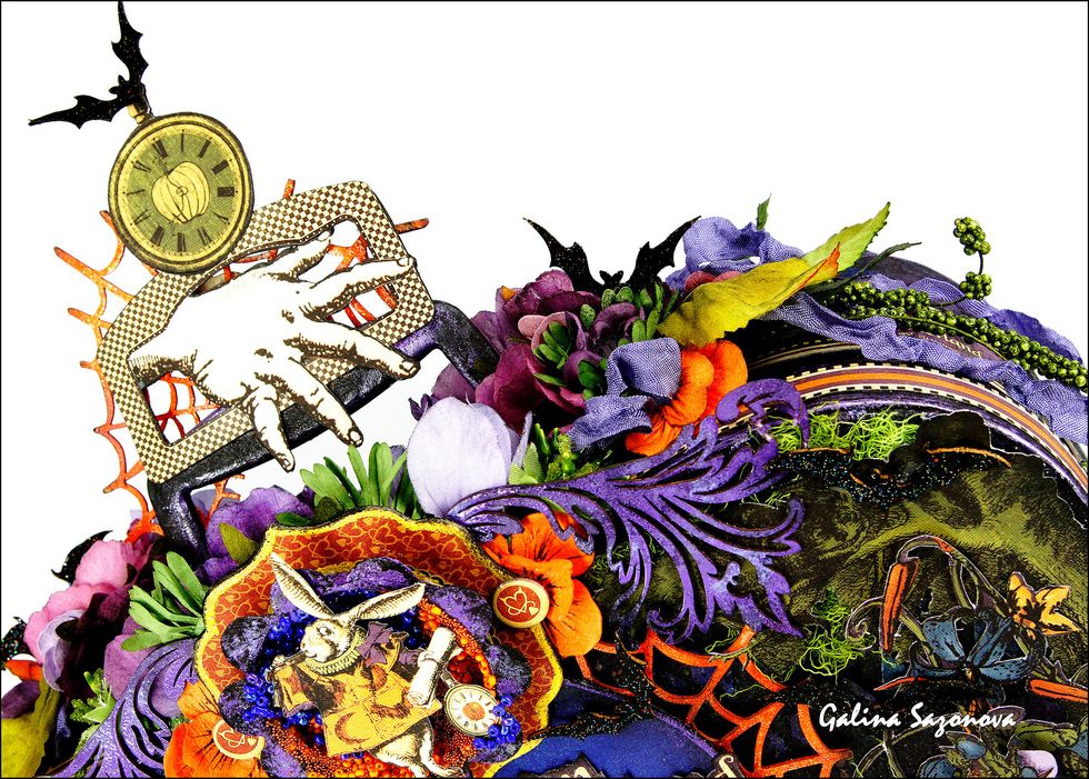 Некоторые детали красим только спреем с мерцающими частичками. После высыхания тонируем черной краской, придавая объем.