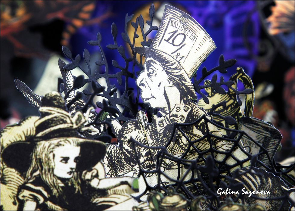 Затем вырезаем понравившиеся нам мотивы из бумаги и слегка тонируем их черными чернилами.