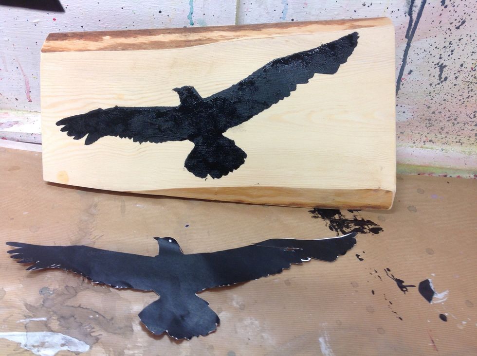Hyvla och putsa brädan riktigt noga så den blir slät och fin. Klipp ut din figur. OBS tänk på att den vita delen måste vara så hel som möjligt, det är den du ska använda när du färgar din silhuett.